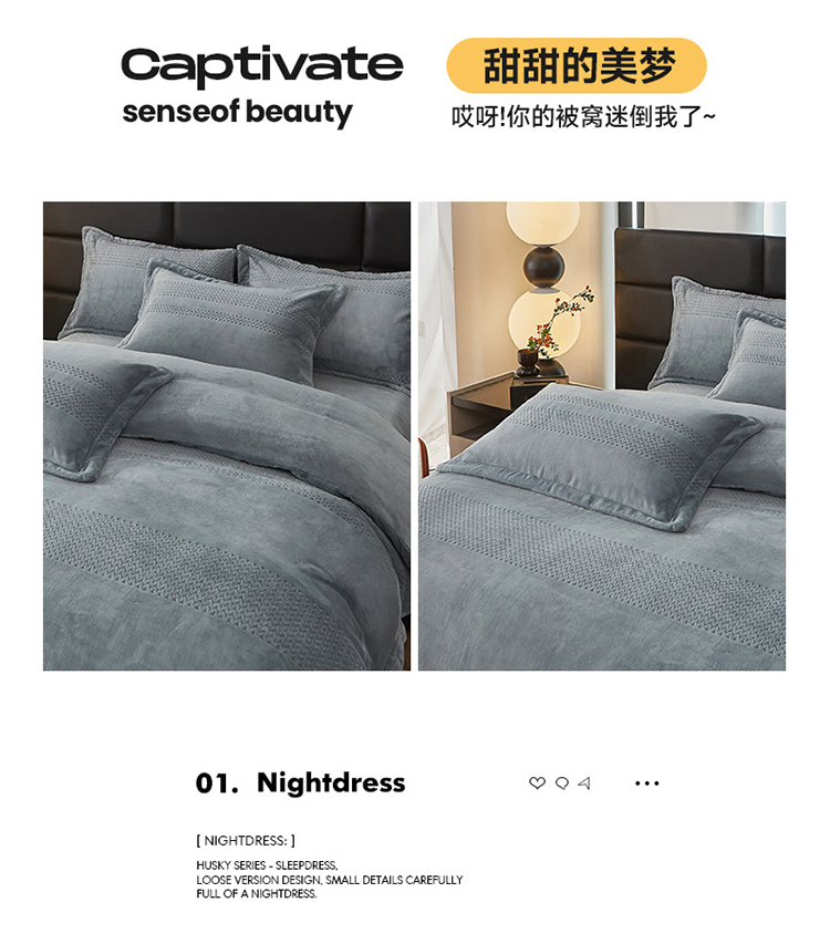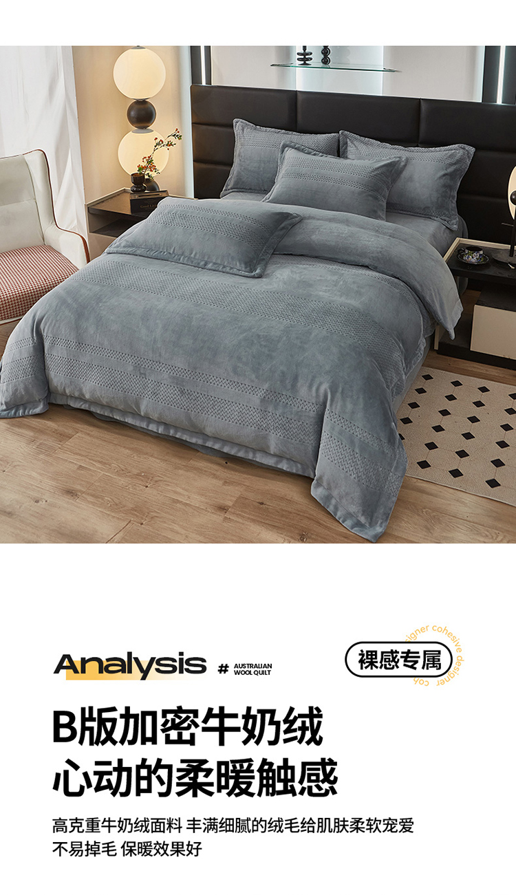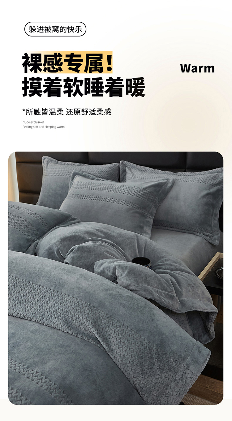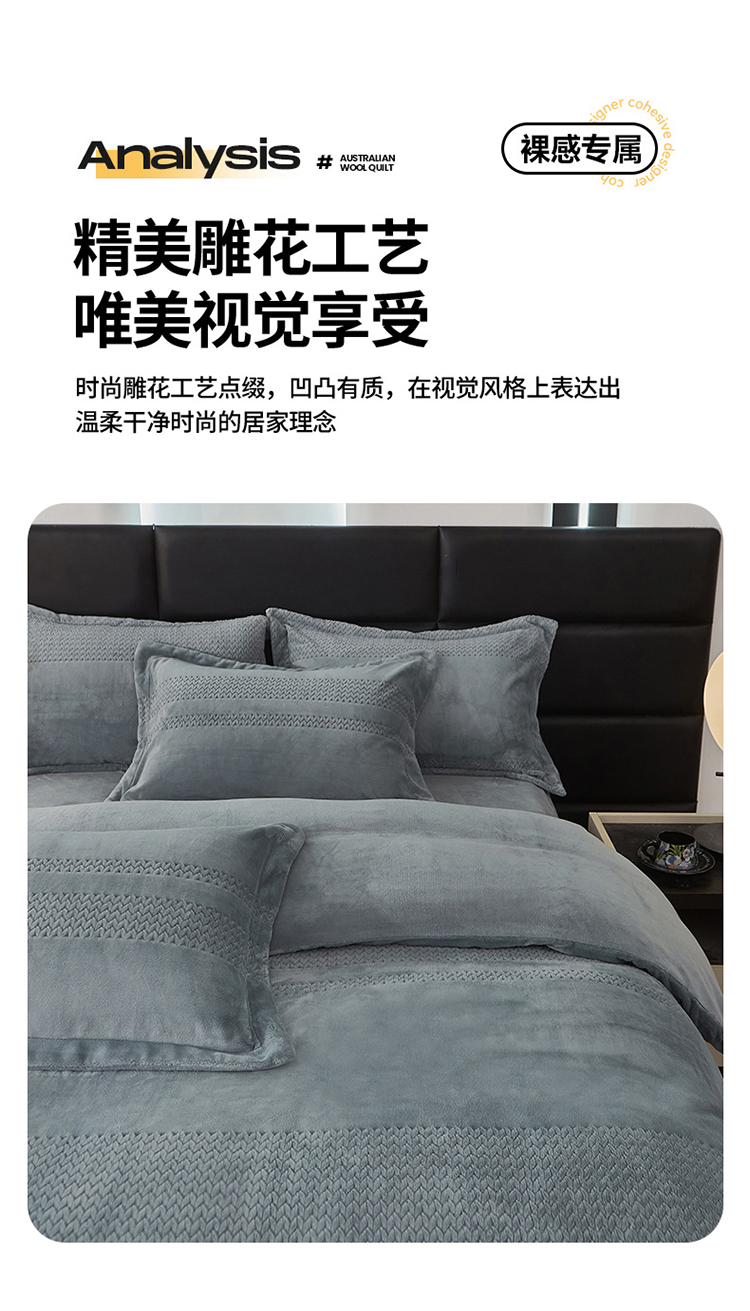 商品名称:绣女坊 2024新款雕花绒-大麦四件套 大麦-灰色