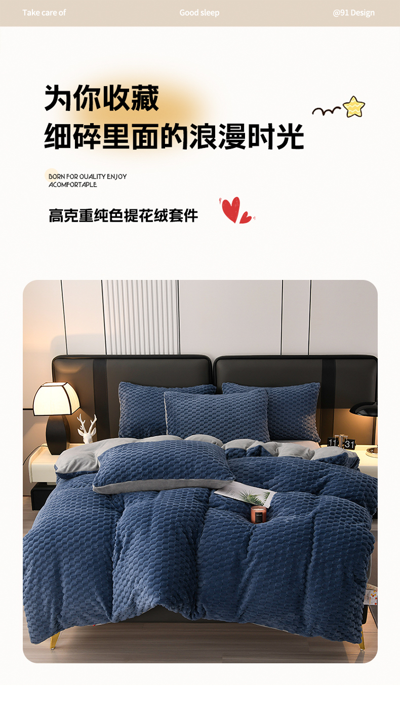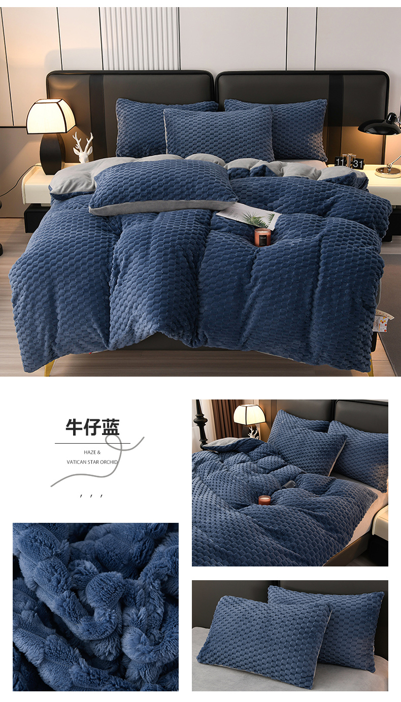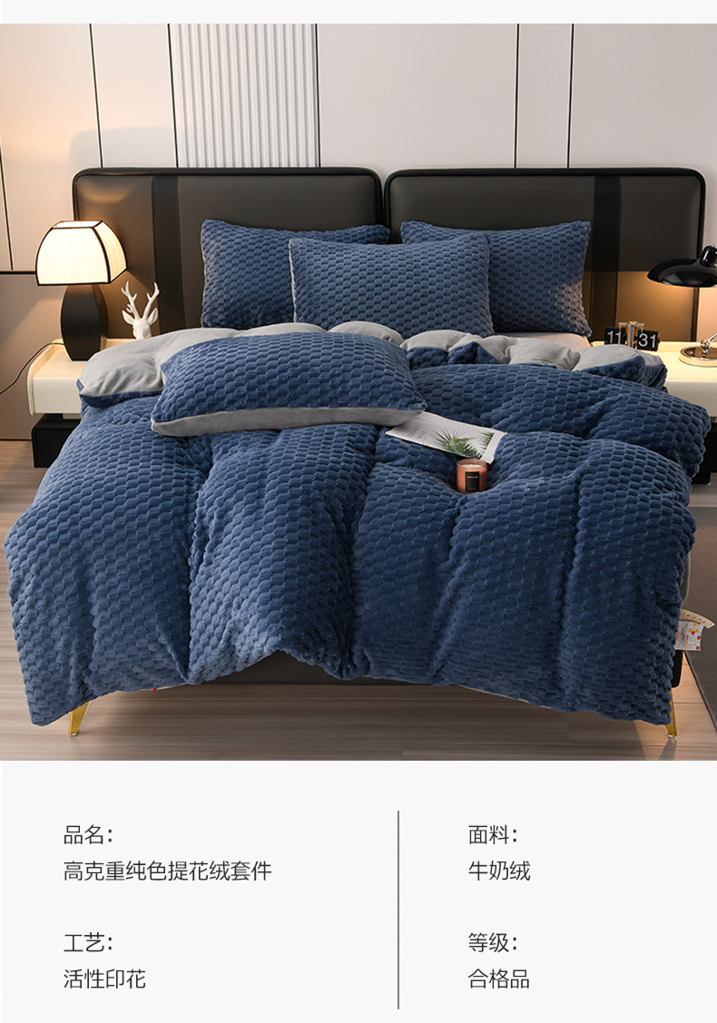 当前位置: 91家纺网 > 商品网购 > 床品套件 > 四件套 > 提花四件套 > 菡宝 2024新款高克重金龟绒纯色提花四件套 牛仔蓝