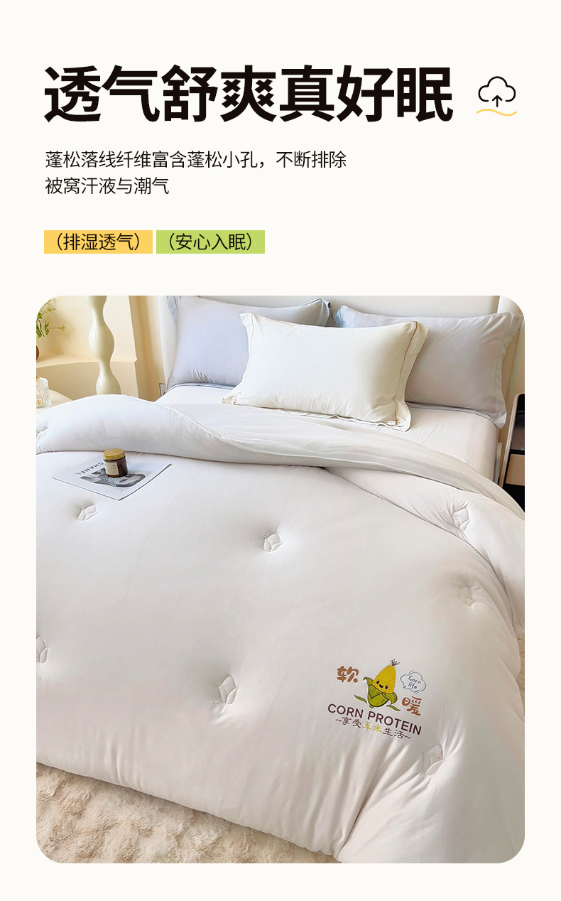 • 91家纺网 家纺一手货源 找家纺 暖阁 2025新款糯糯玉米被大豆被冬被春秋被被子被芯 珍珠白