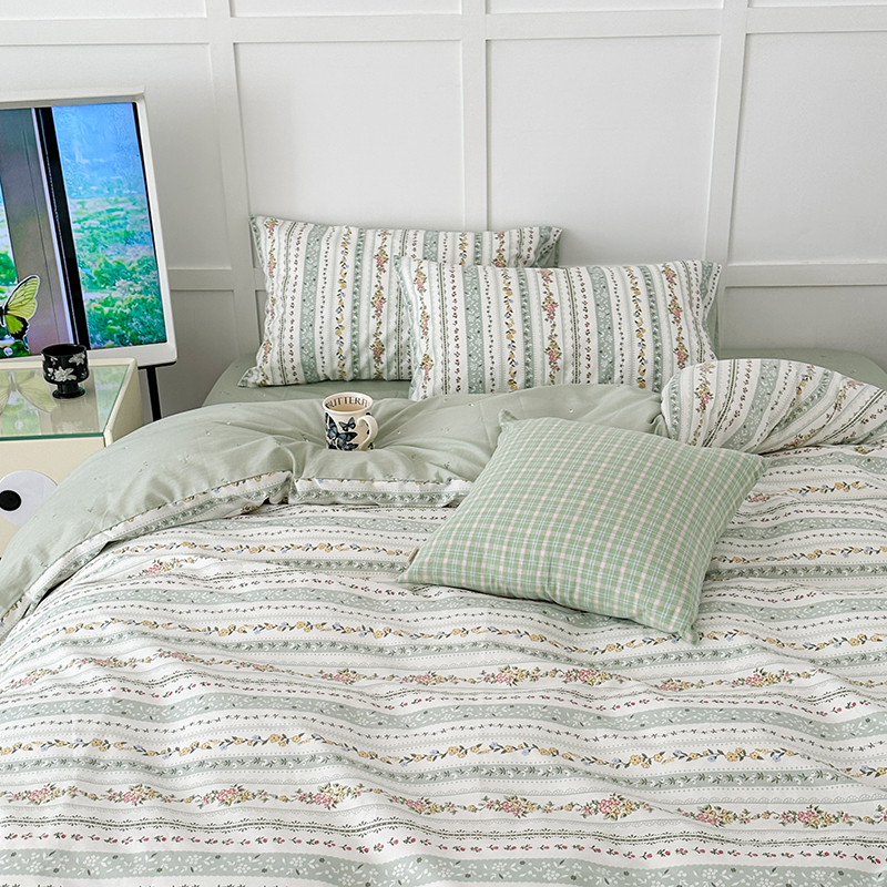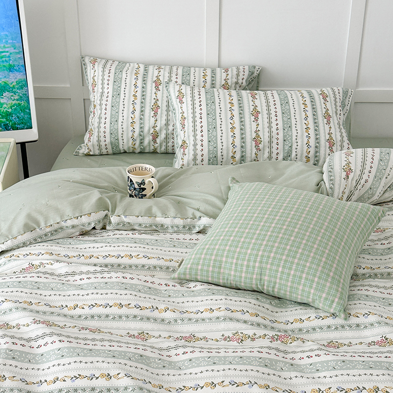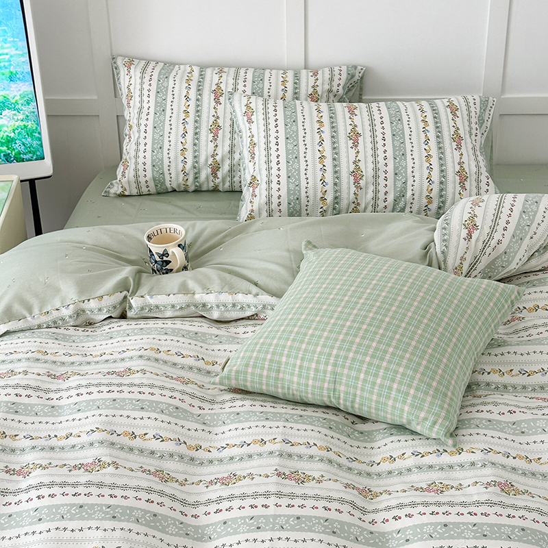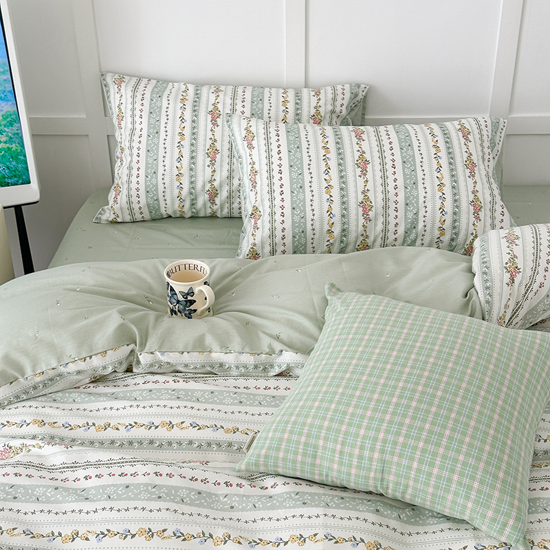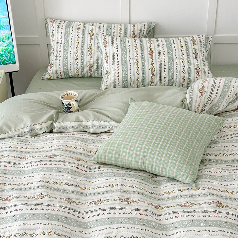 (总)昔可 2023新款全棉ins格子混搭系列四件套,ins简约绿格,粉蓝格,开心果格,学院格纹,粉绿格,海盐兰格,黄绿格,夏日蓝条,芝士黄条,紫芋泥芝士格