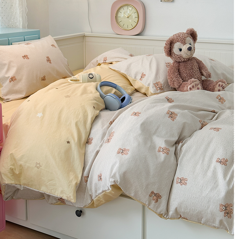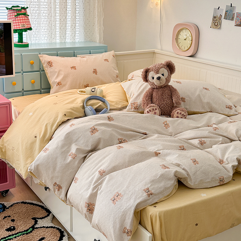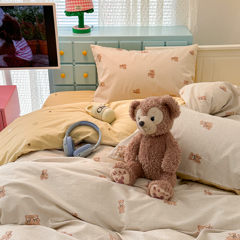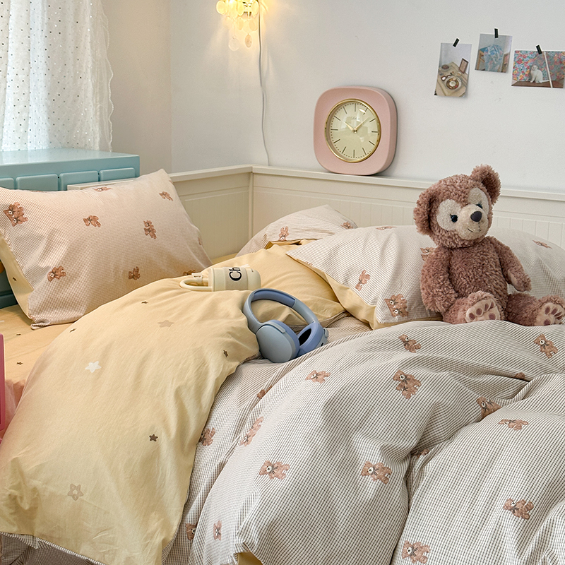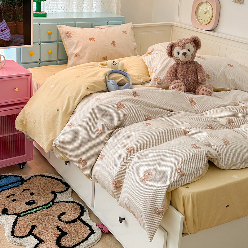 昔可家纺 2024新款13372全棉亲肤四件套-卡通系列 复古小棕熊