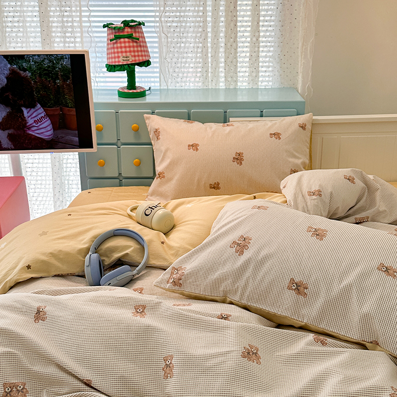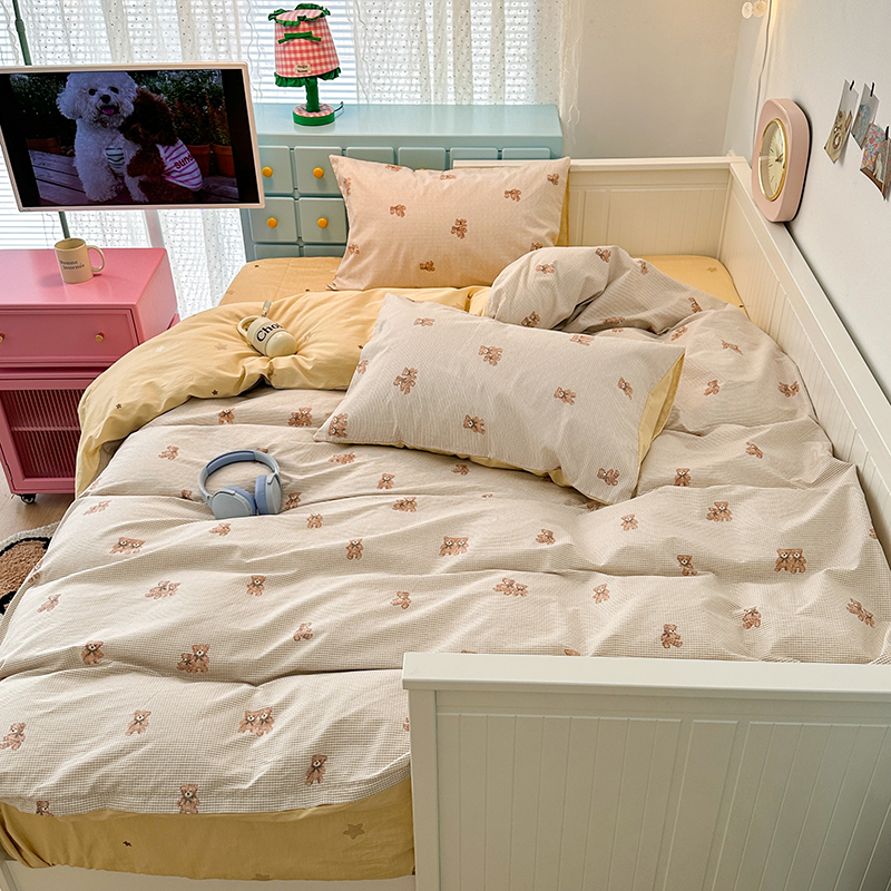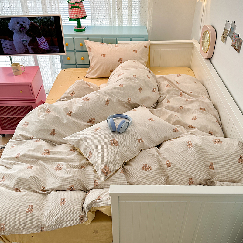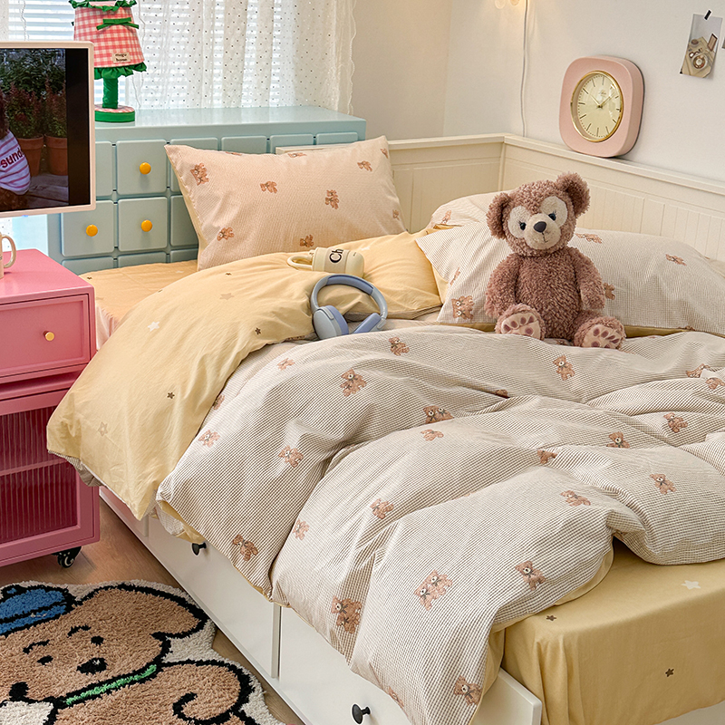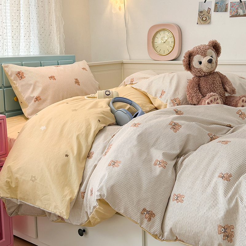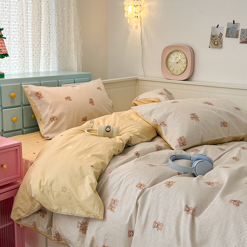 昔可家纺 2024新款13372全棉亲肤四件套-卡通系列 复古小棕熊