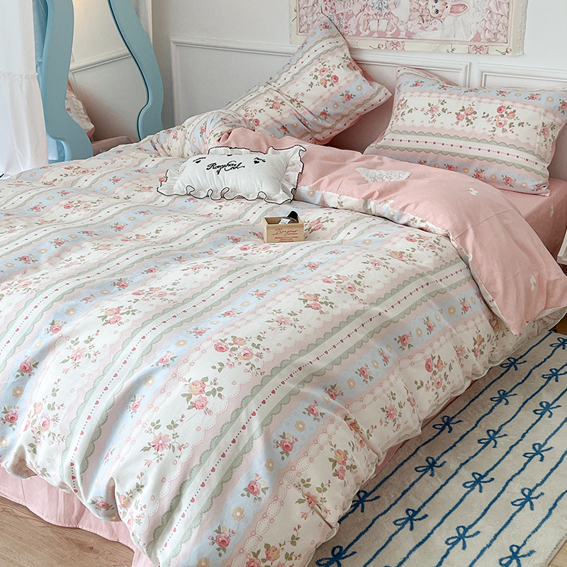 (总)昔可 2023新款学生季全棉四件套-小花系列,柏林少女,花野迷踪,少女粉草莓,微熏海棠,夏茉莉,小兰花,小小的樱桃,紫色果果,紫色葡萄