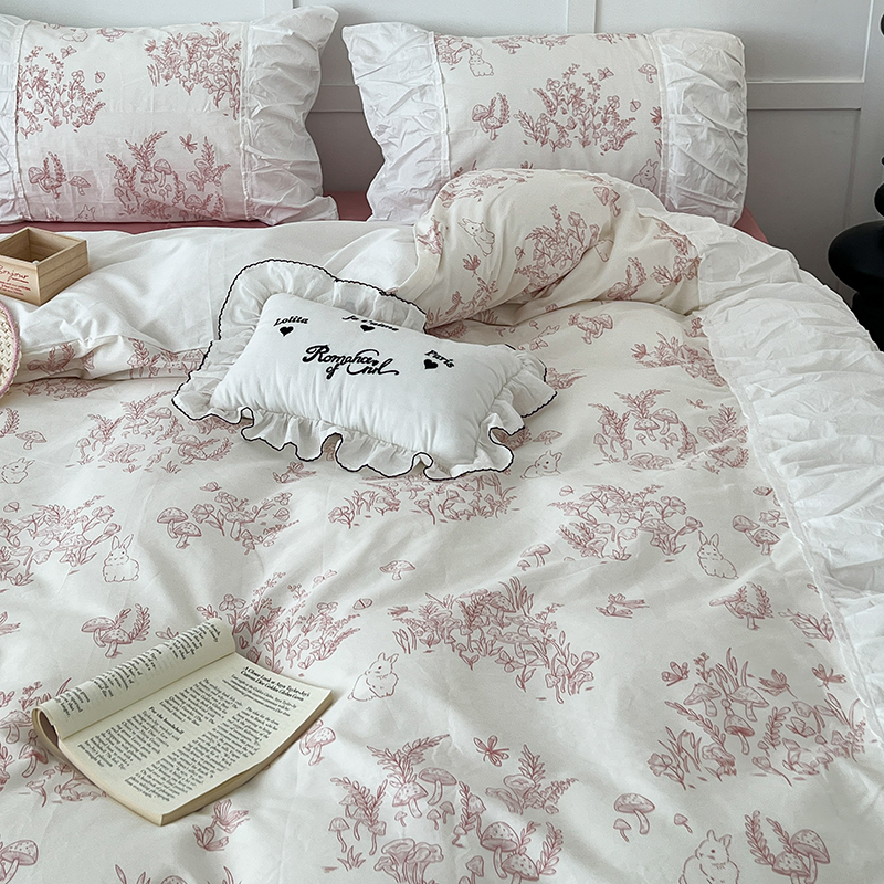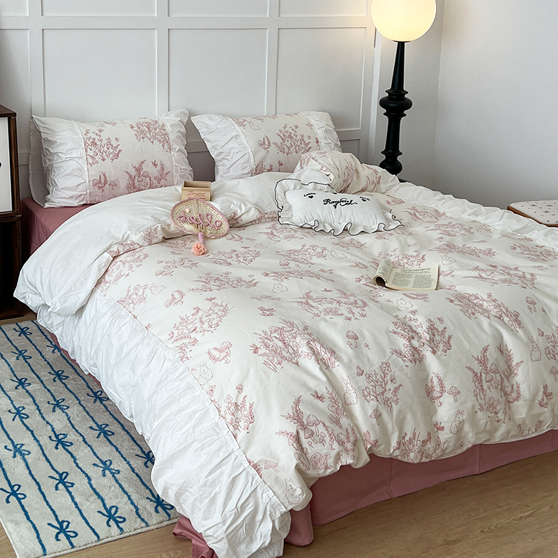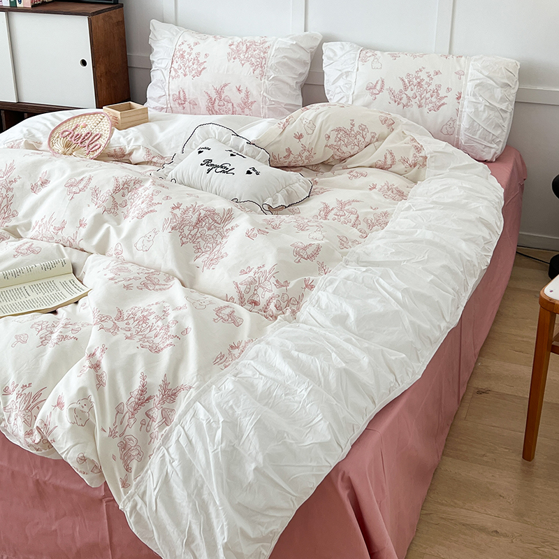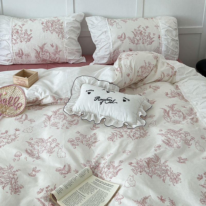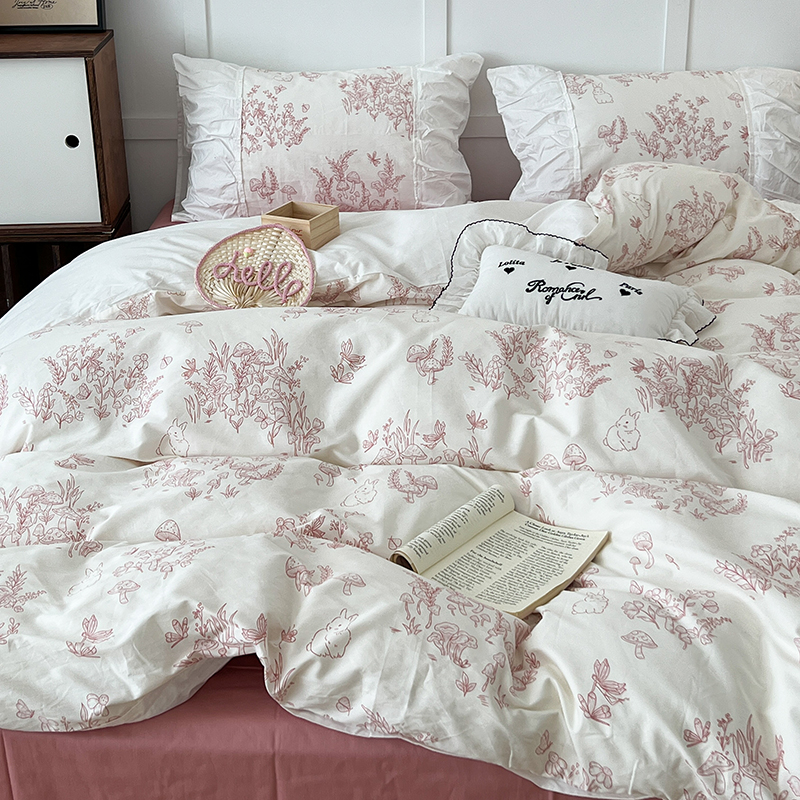 (总)昔可家纺 2024新款印花牛奶绒四件套系列-洛丽塔风,萝莉小兔,小熊烘焙屋,小熊玩偶屋