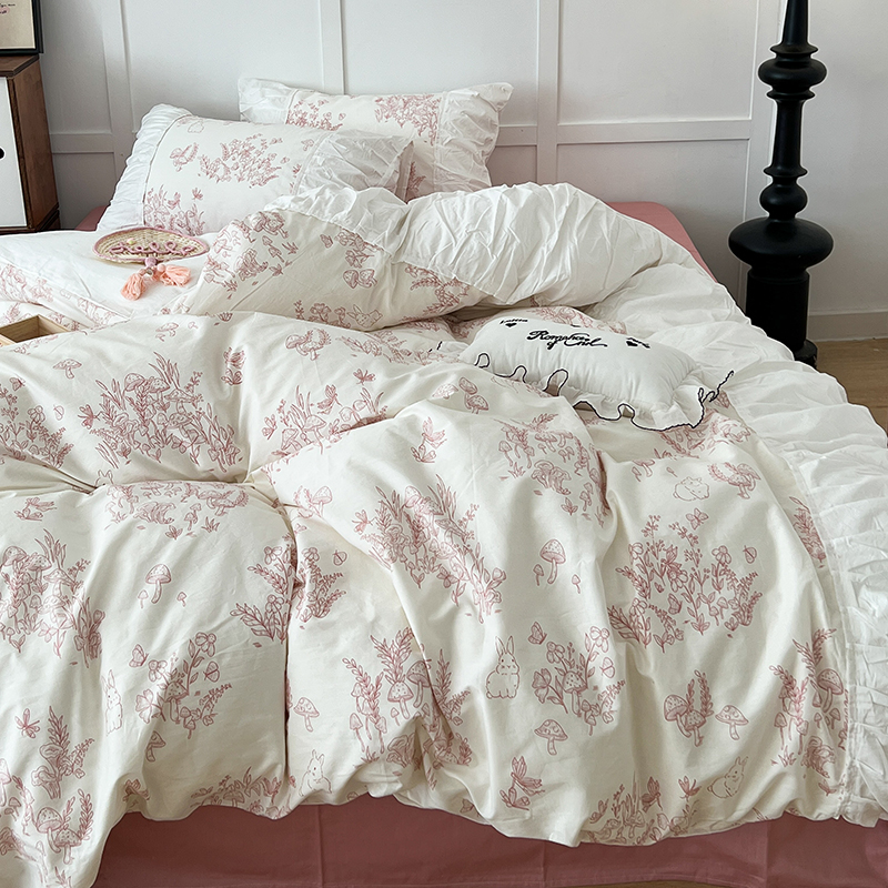 昔可家纺 2024新款韩版花边工艺款轻奢四件套 复古素描花边