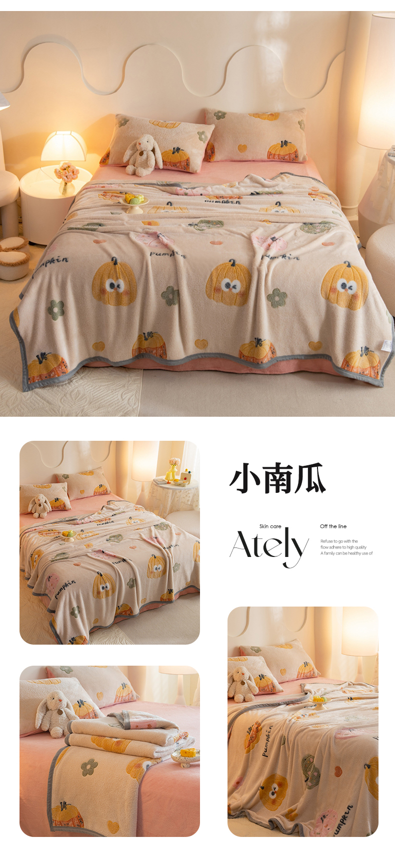商品名称:慕梵家居 2024新款雪花绒多功能包边毛毯 小南瓜