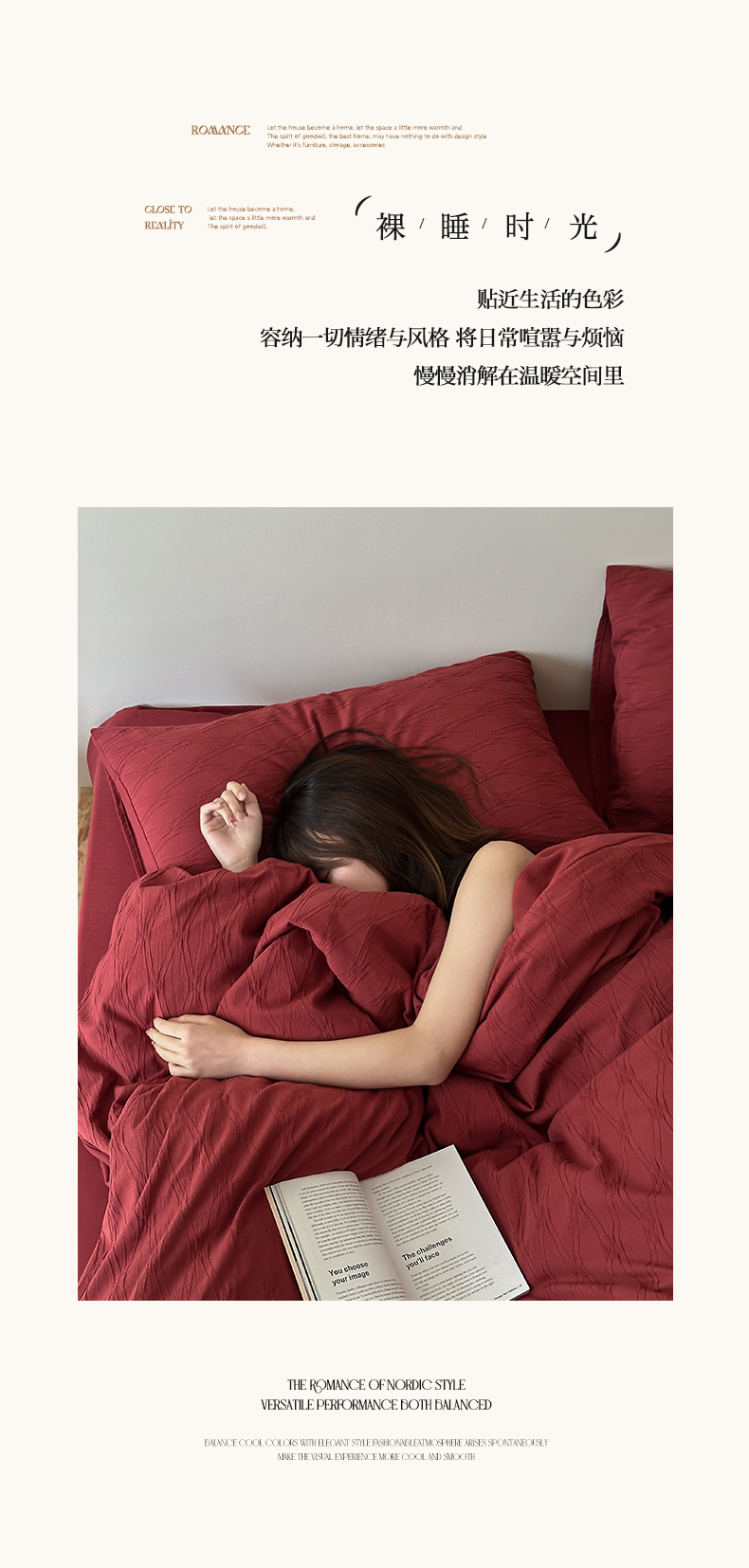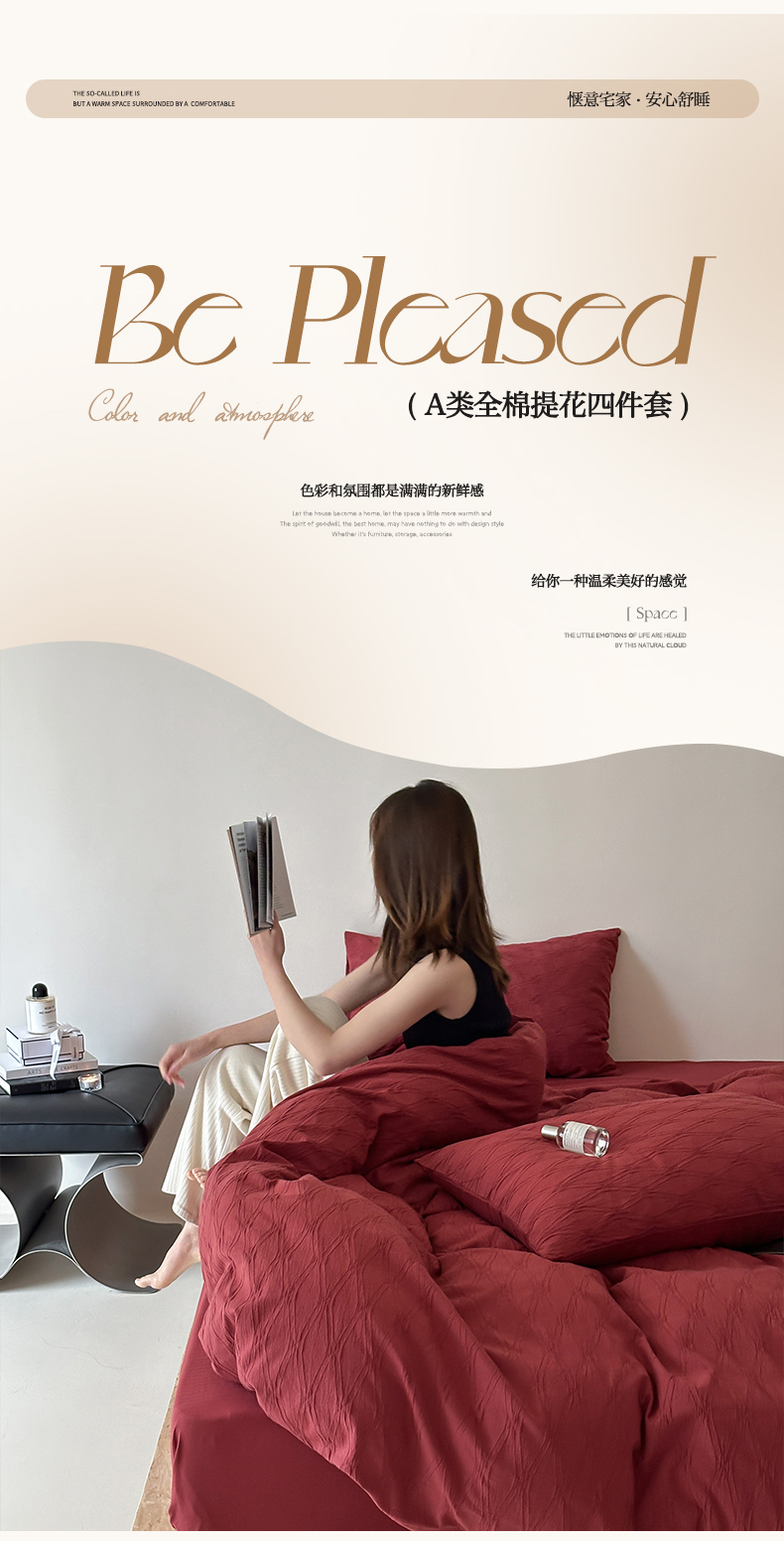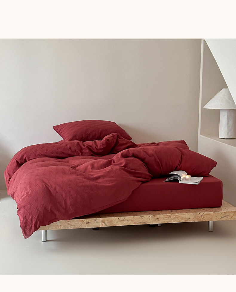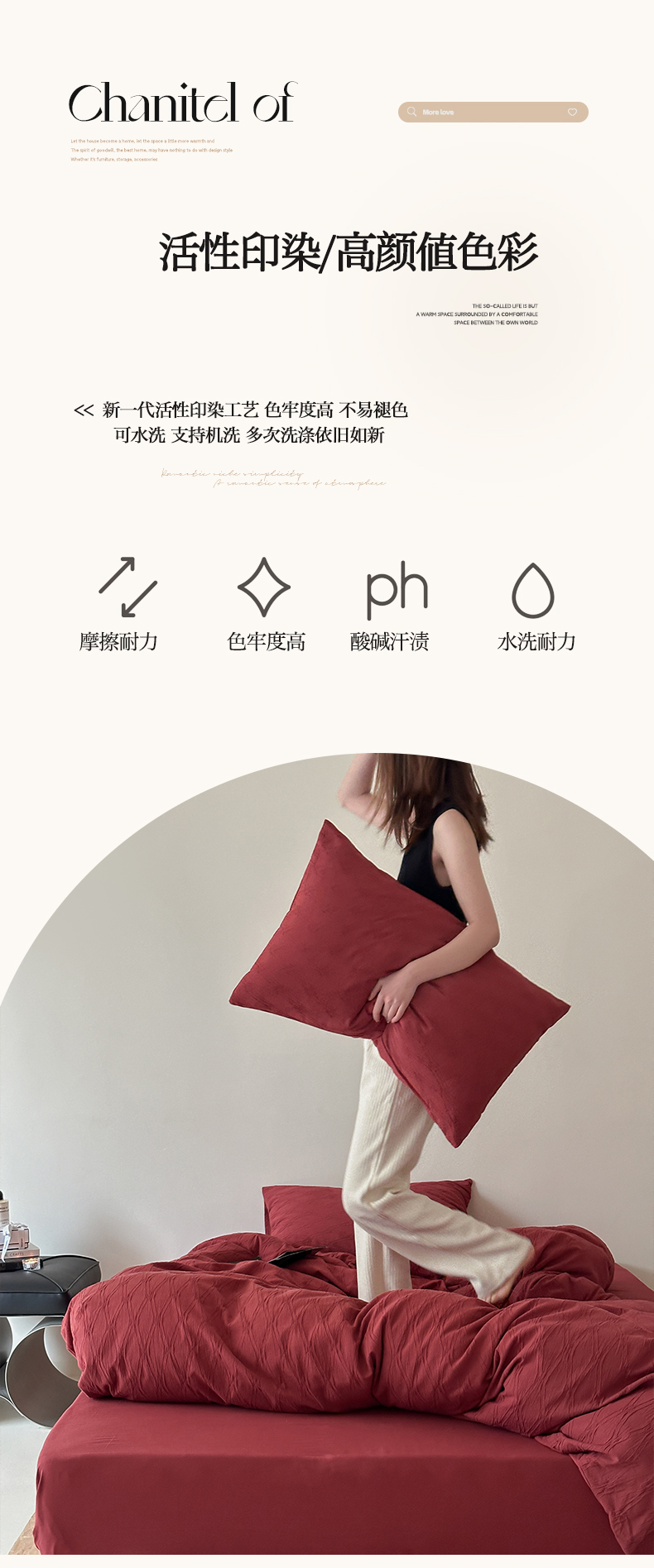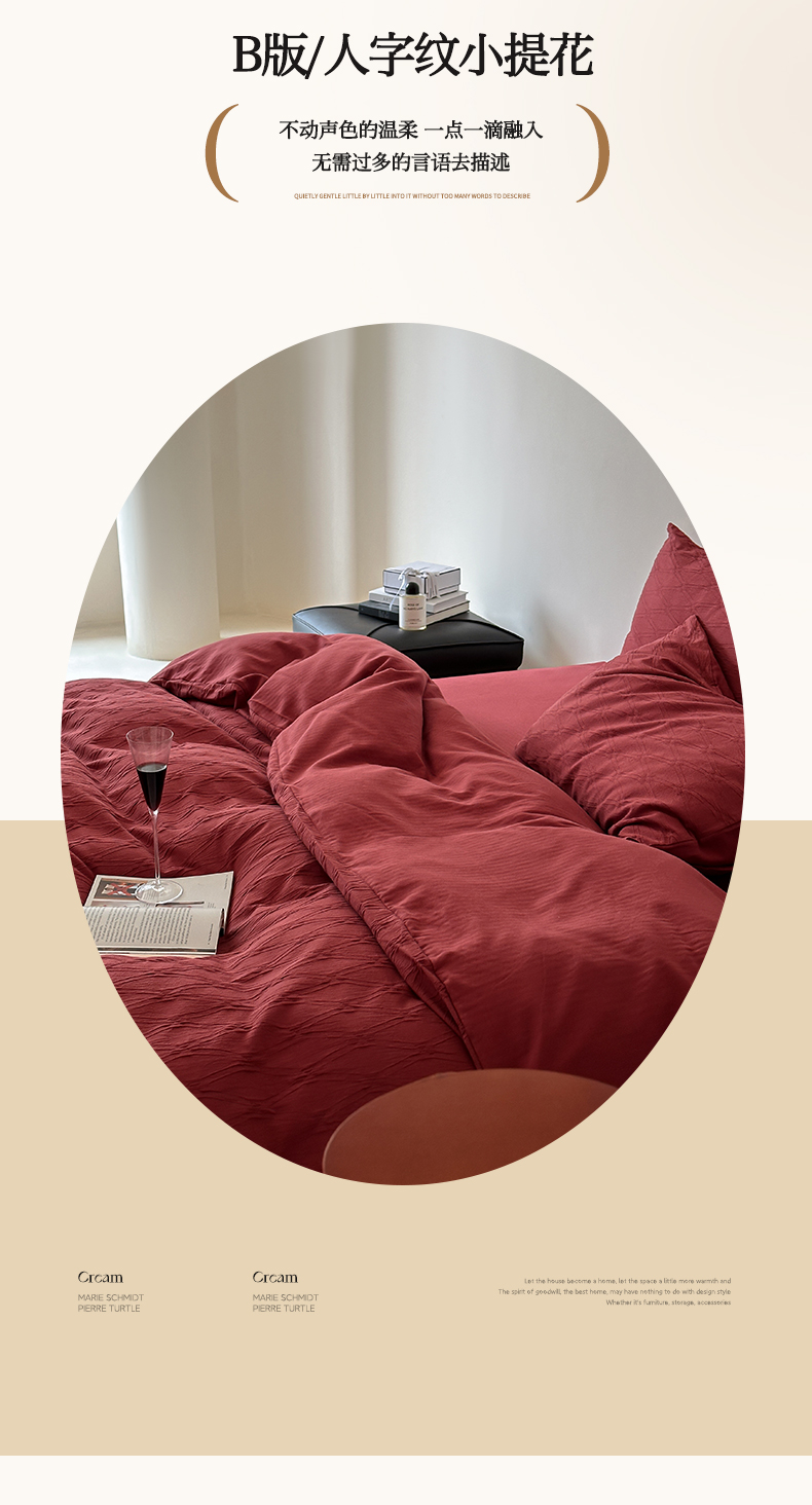 商品名称:山舍家居 2024新款菱形格全棉提花四件套 菱形格-安哥拉红