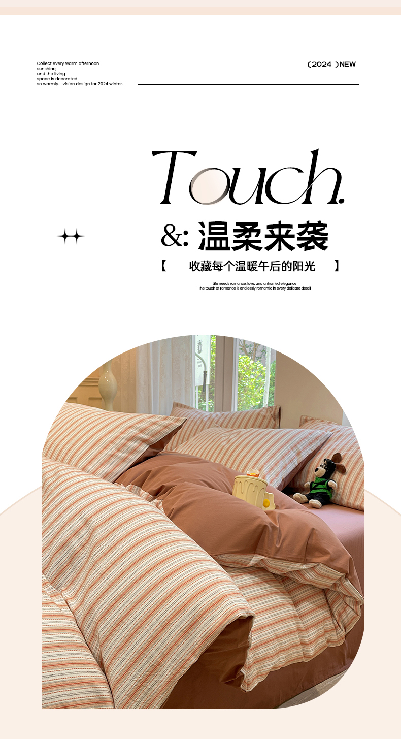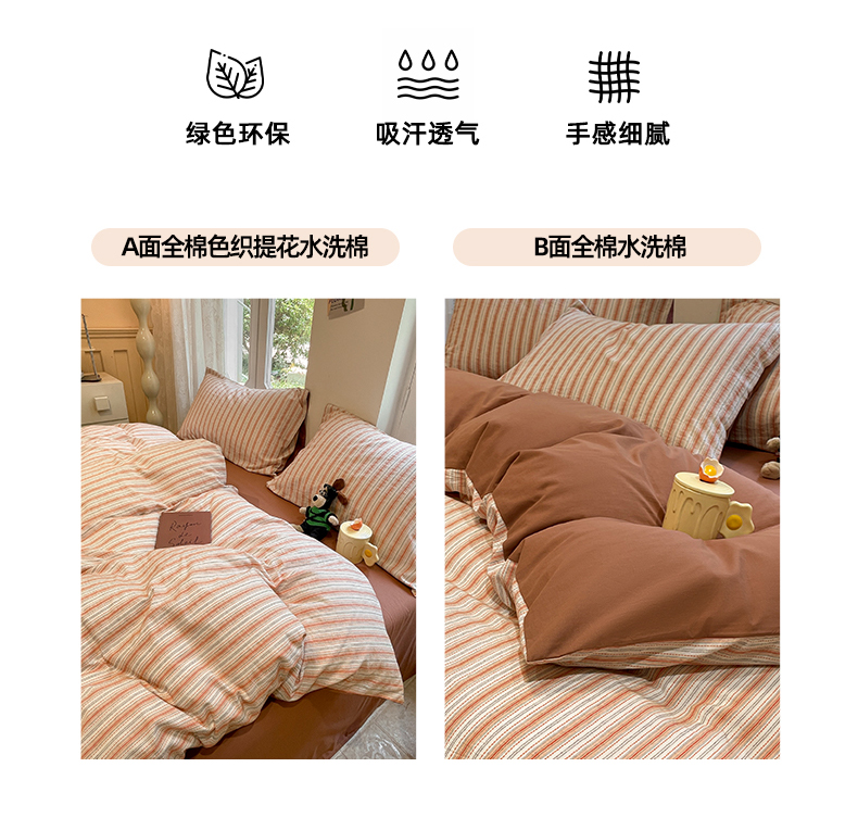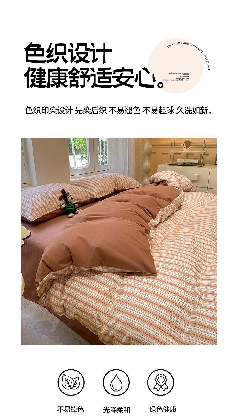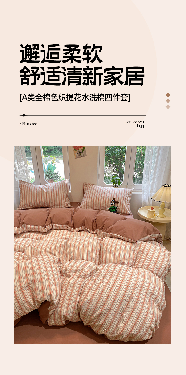 莱茵家居 2024新款色织提花全棉水洗棉四件套 素瑾-焦糖