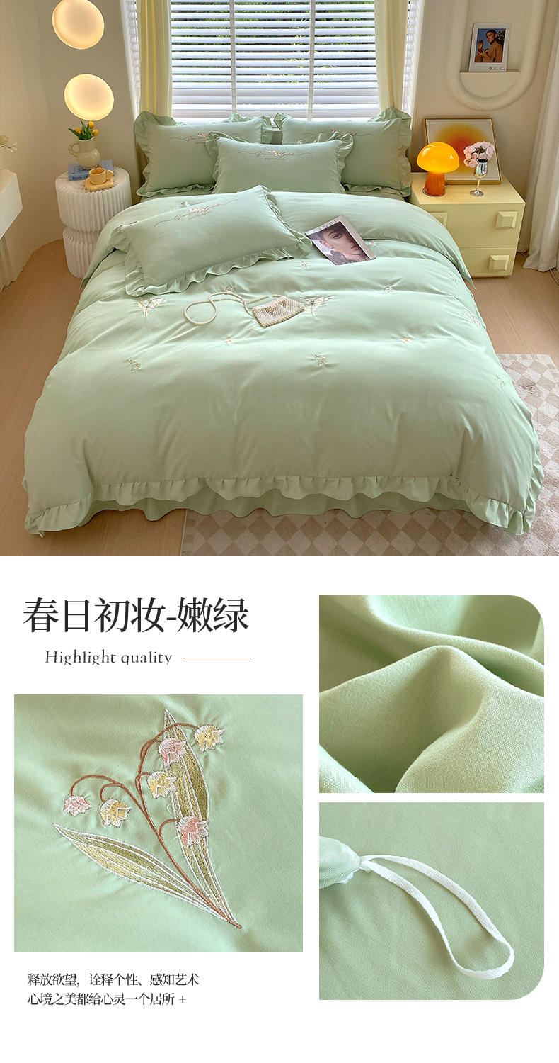 帛缔思 2024新款A类铂金棉水洗棉四件套-春日初妆 春日初妆-嫩绿