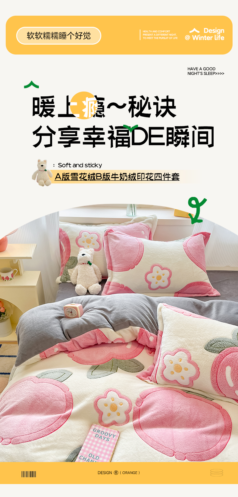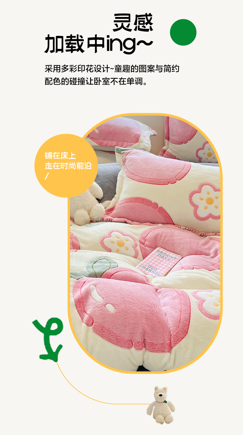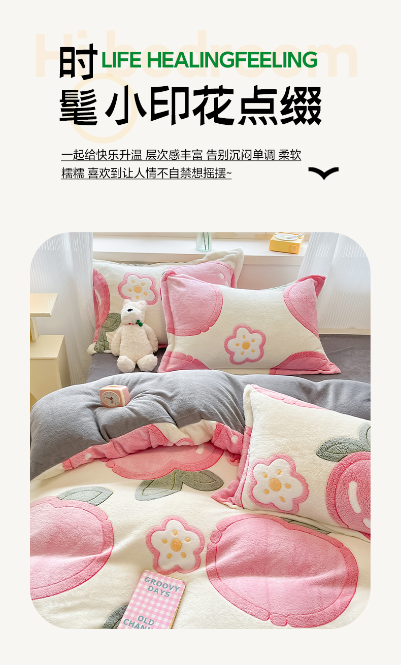 当前位置: 91家纺网 > 商品网购 > 床品套件 > 四件套 > 牛奶绒四件套 > 同田家纺 2024秋冬新品雪花绒牛奶绒印花四件套 啵啵蜜桃