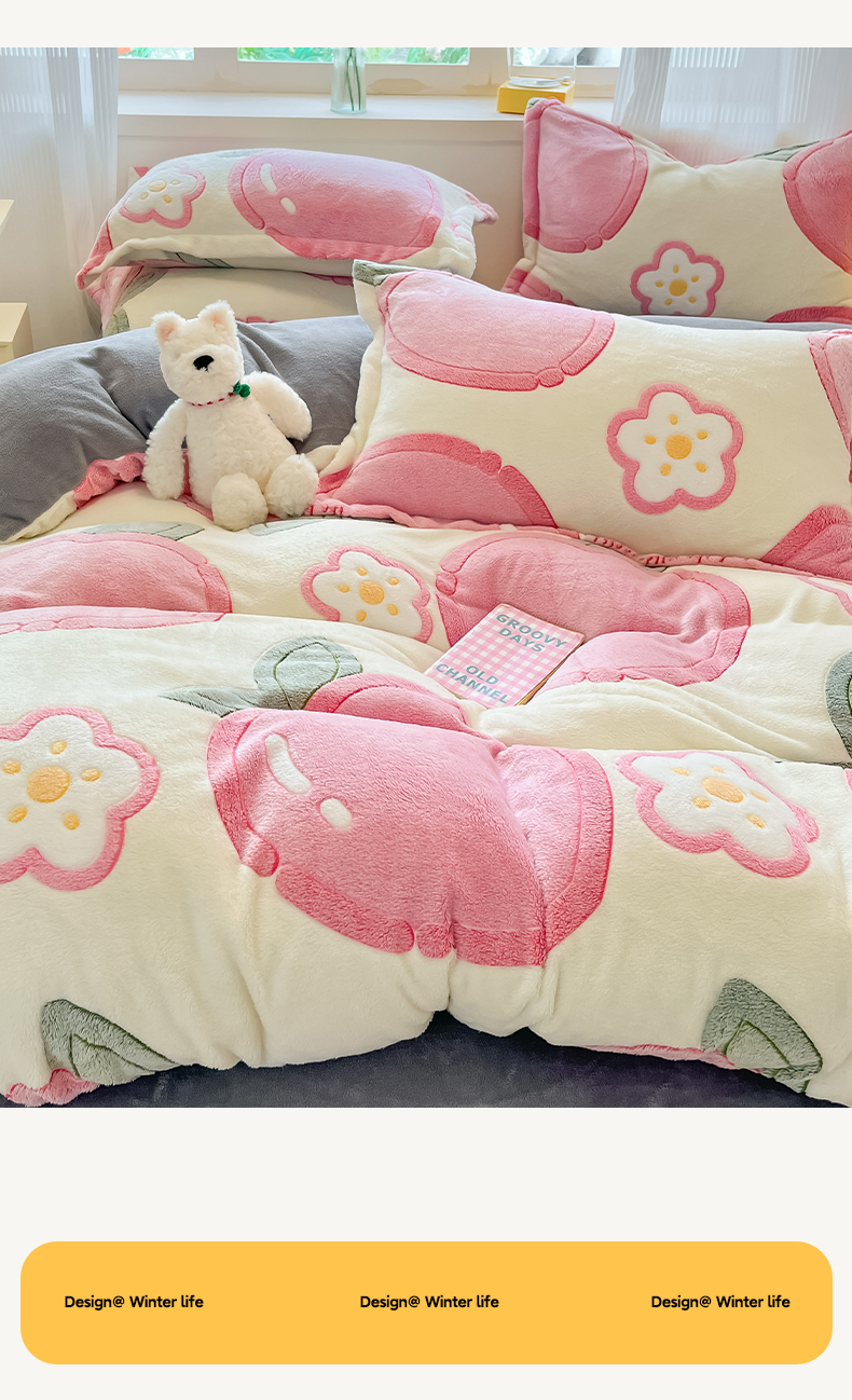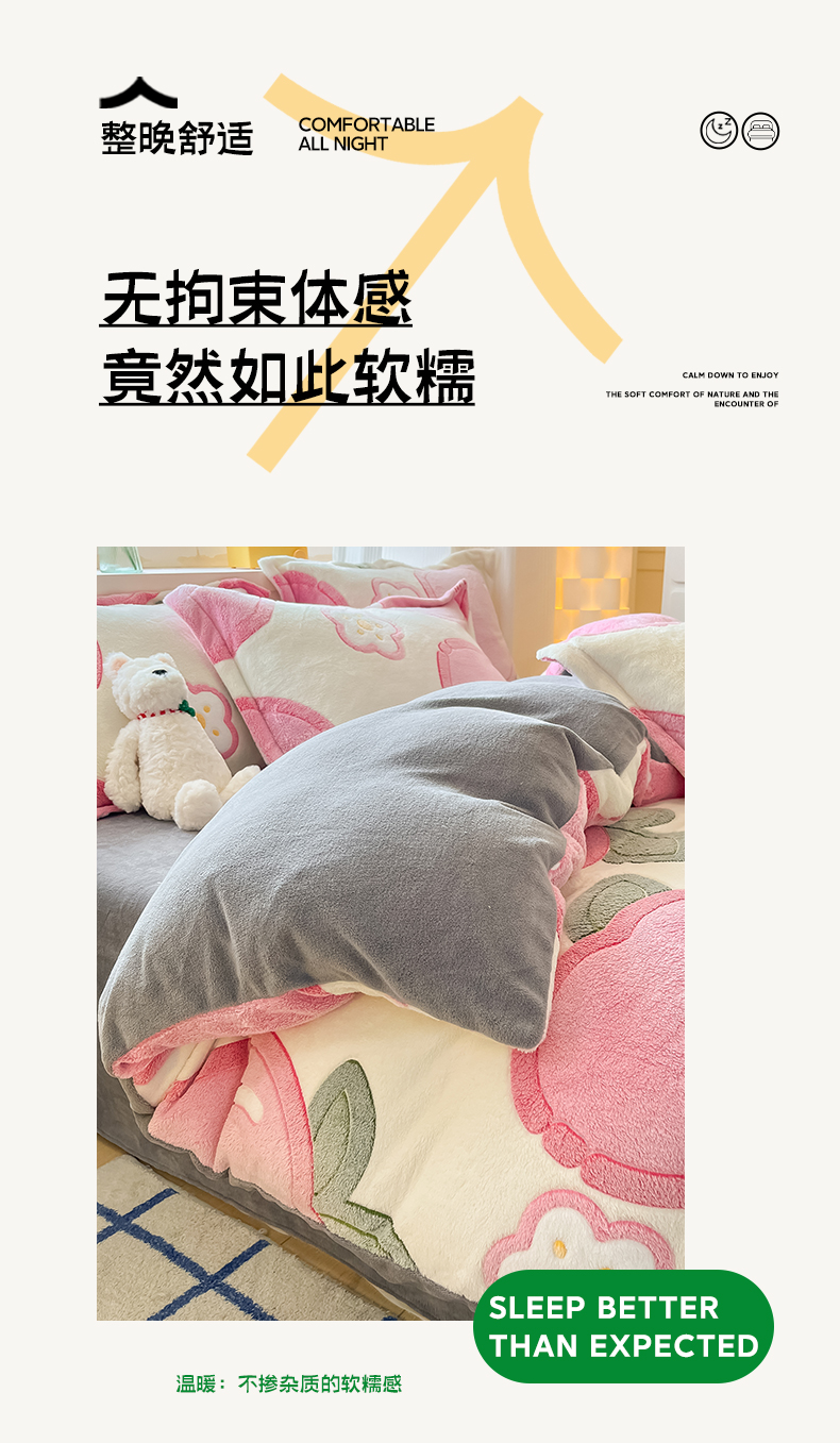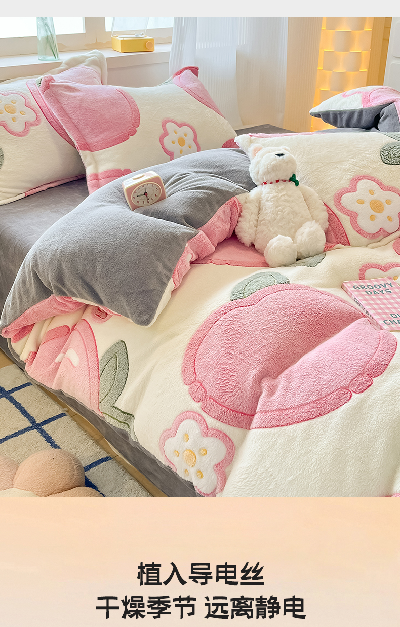 当前位置: 91家纺网 > 商品网购 > 床品套件 > 四件套 > 牛奶绒四件套 > 同田家纺 2024秋冬新品雪花绒牛奶绒印花四件套 啵啵蜜桃