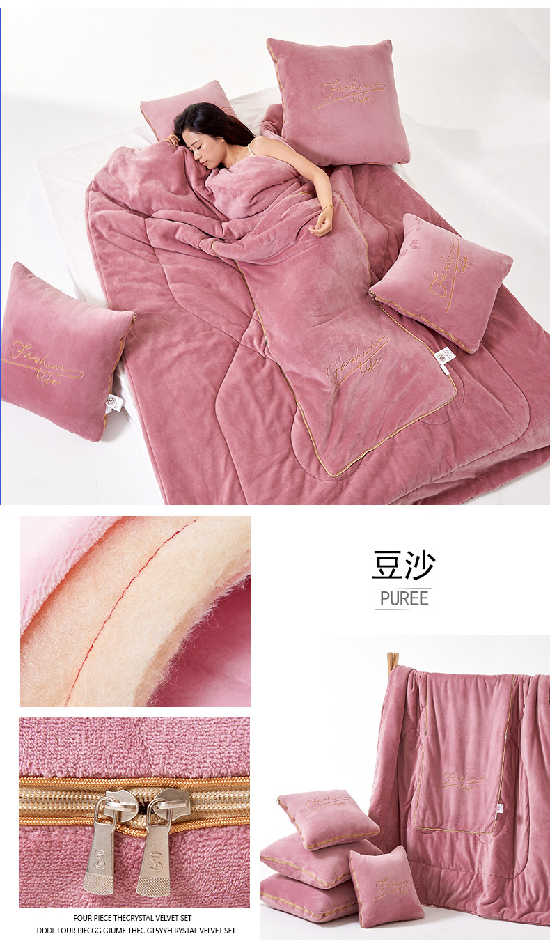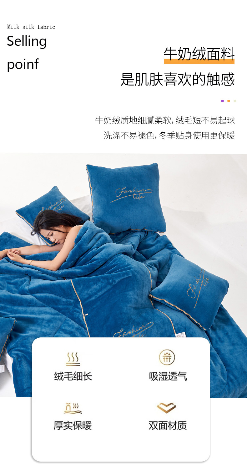 商品名称:照世家纺 2024新款牛奶绒轻奢抱枕被 宝石蓝