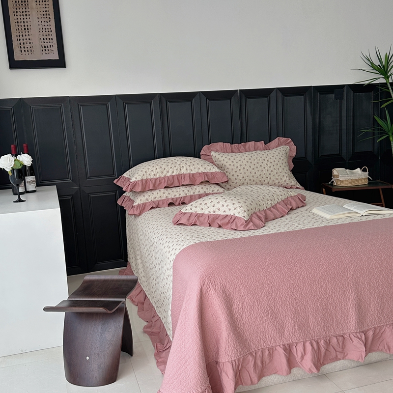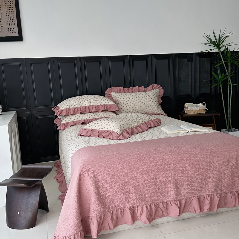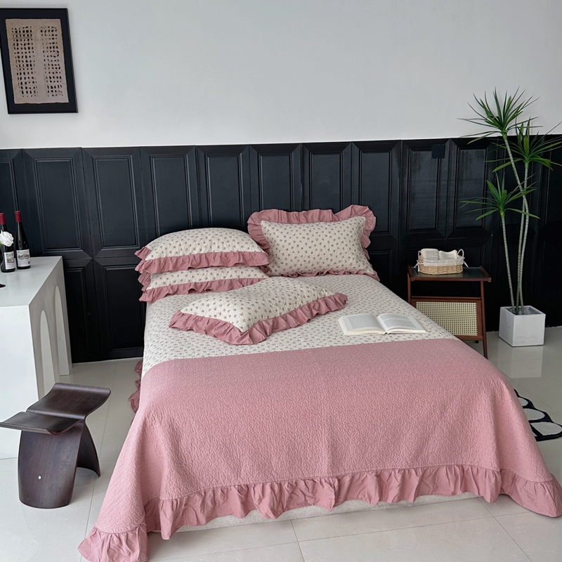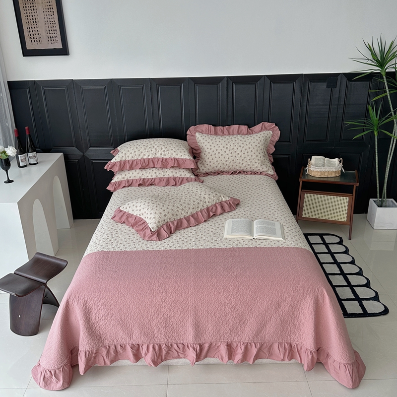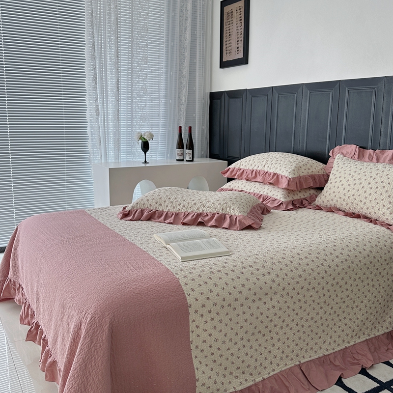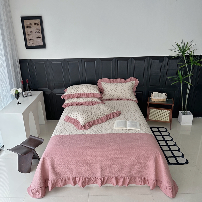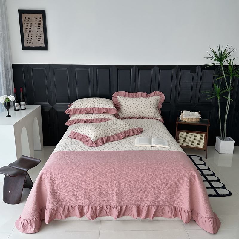 佰织鑫家居 2024新款全棉拼接款棉花砂洗床盖三件套 芳菲