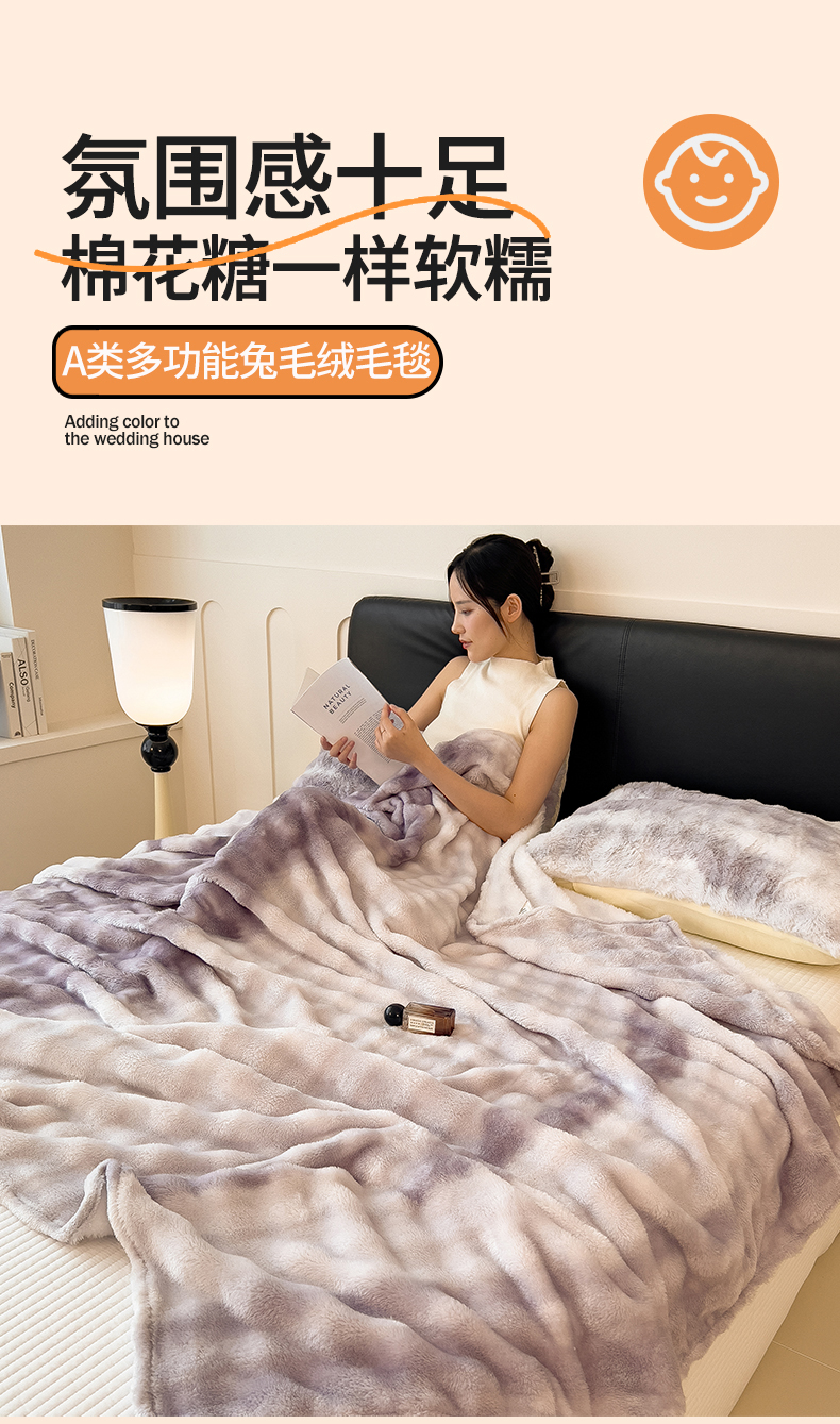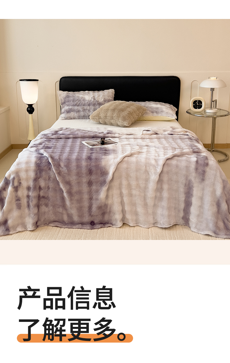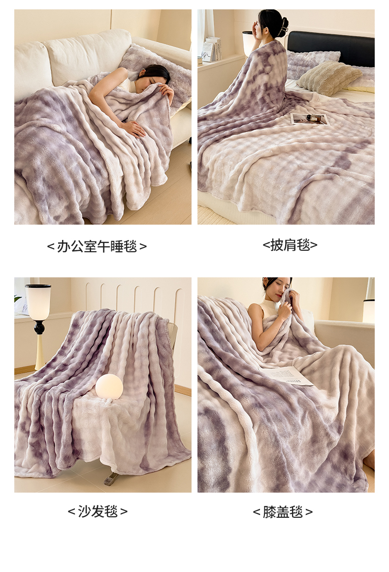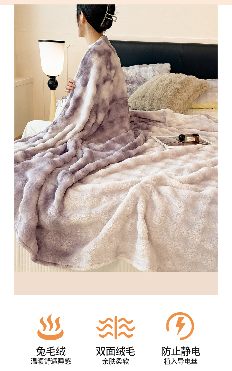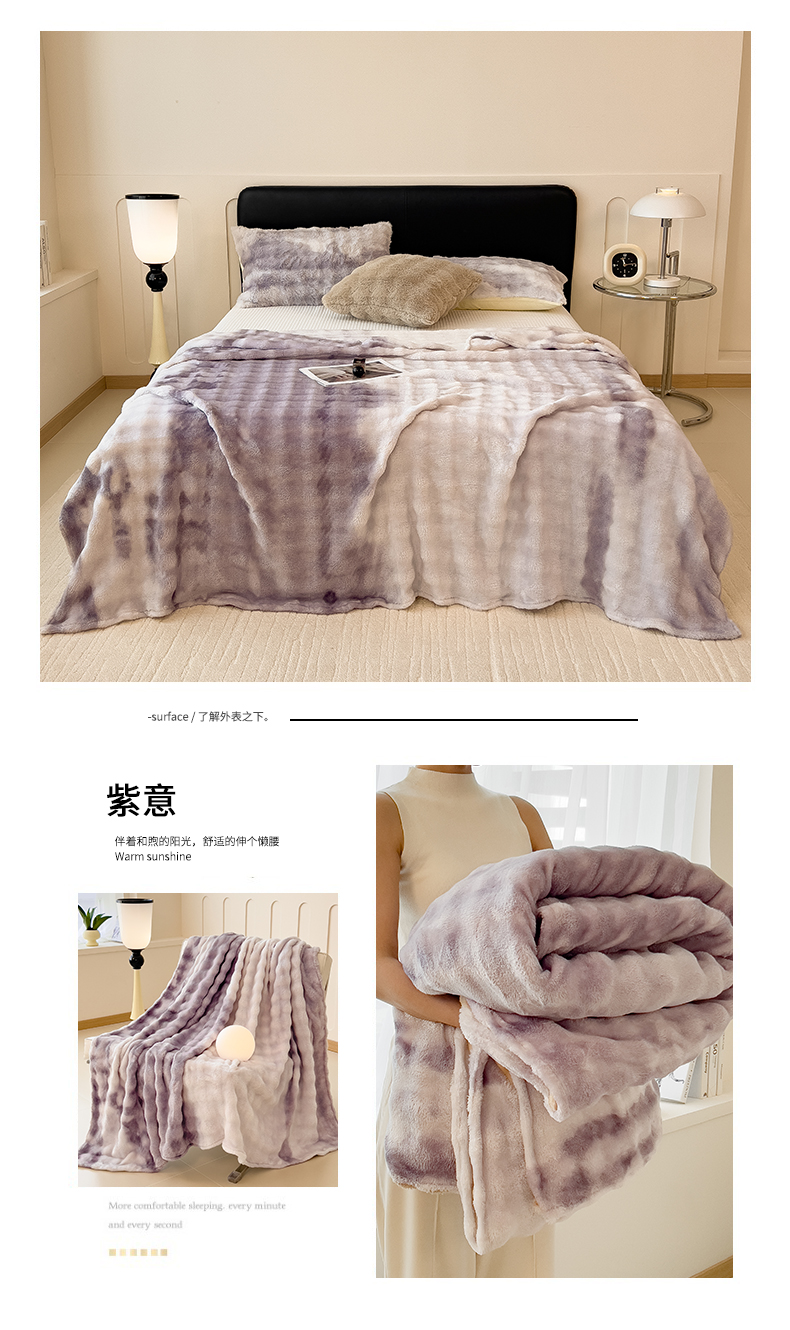 商品名称:兄弟坊 2025新款双面兔毛印花毛毯 午睡毯 盖毯 紫意
