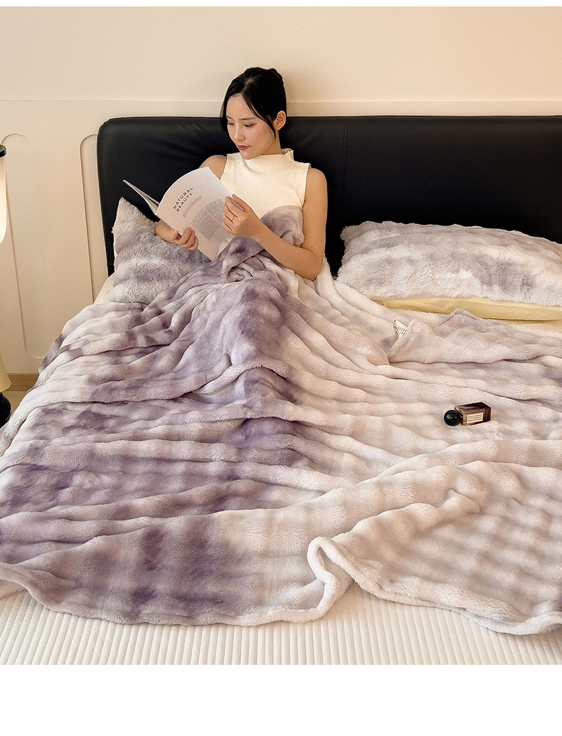 兄弟坊 2025新款双面兔毛印花毛毯 午睡毯 盖毯 紫意