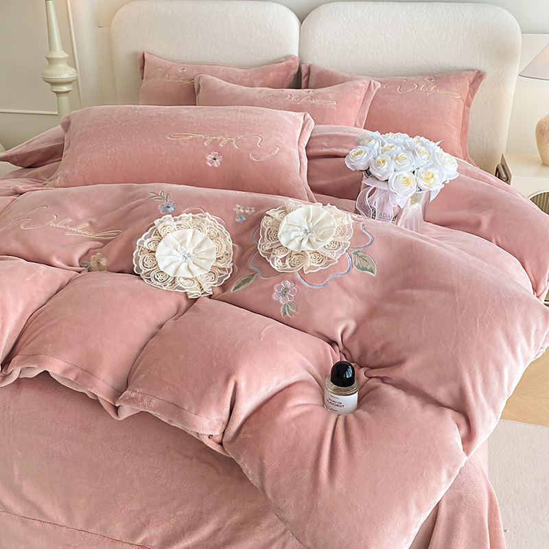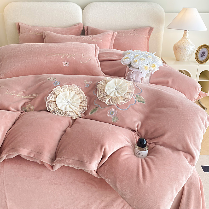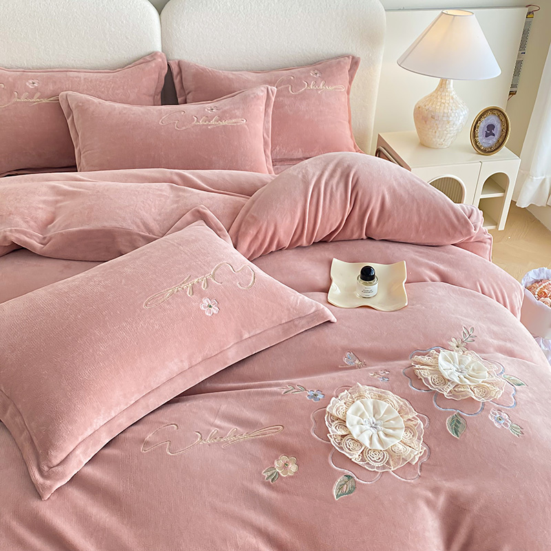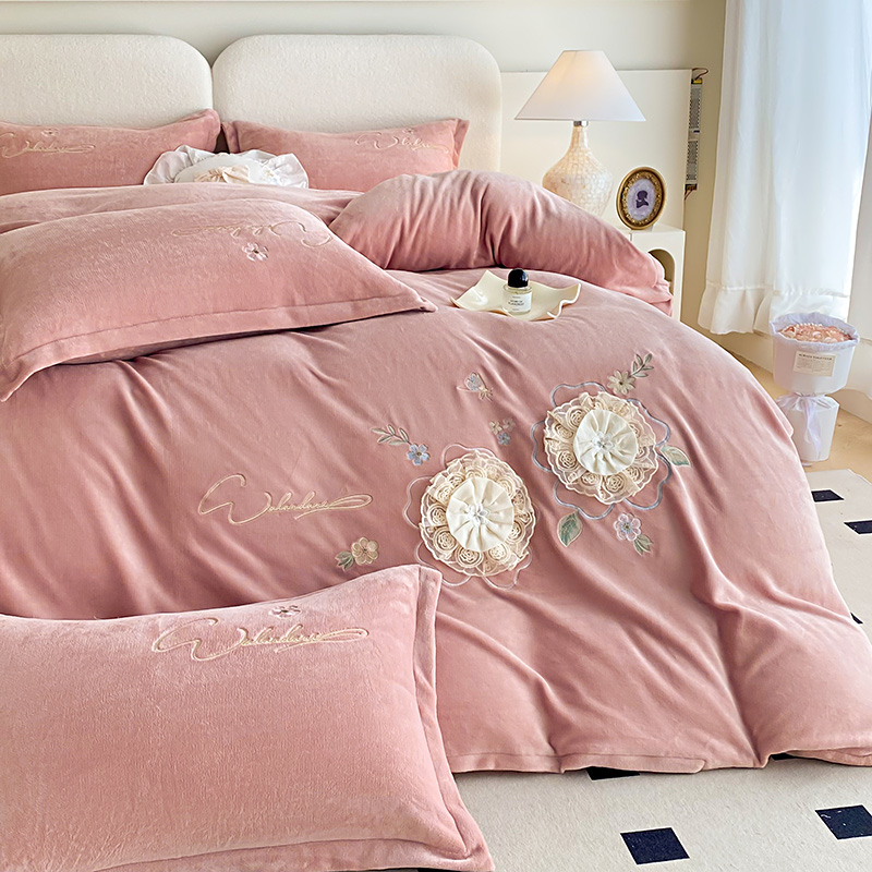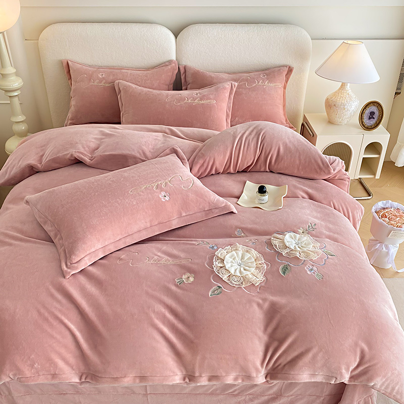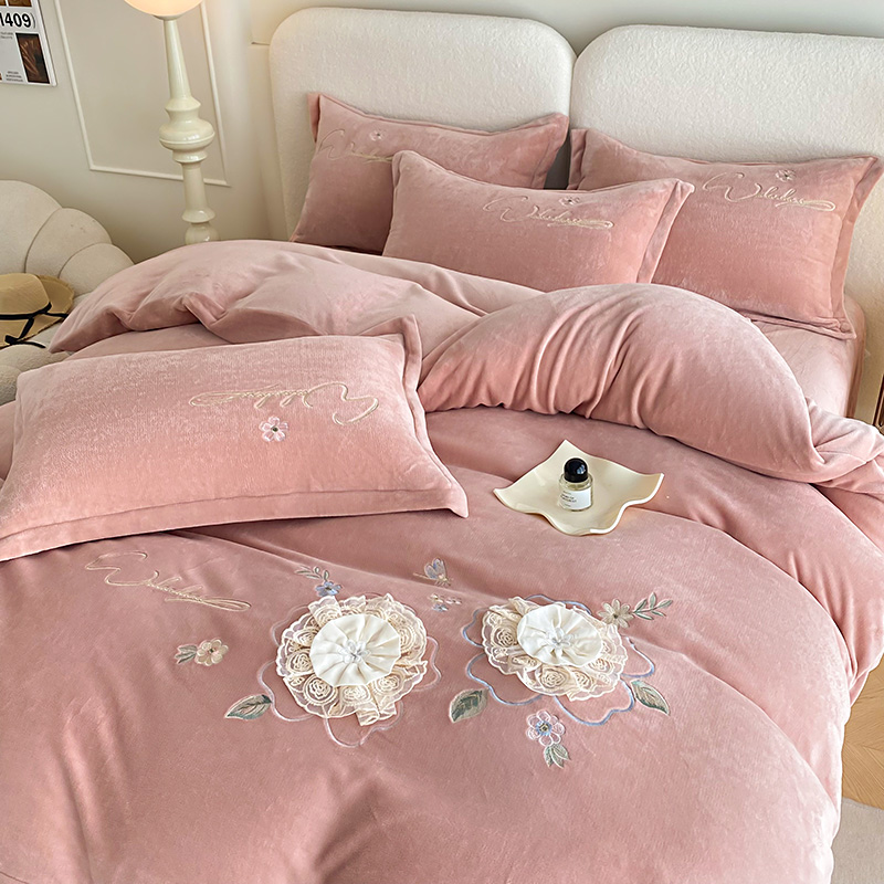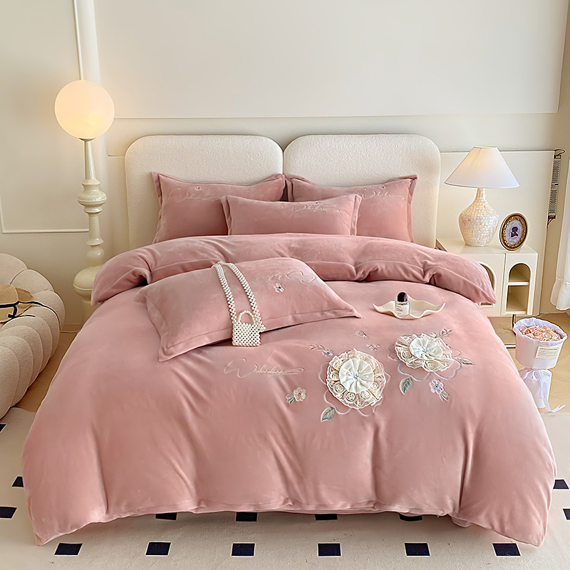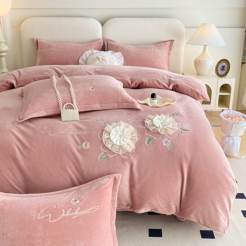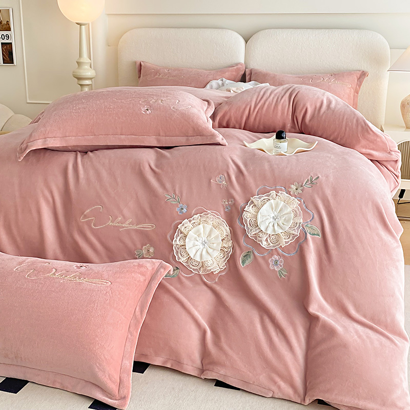 (总)孟鑫家纺 2025新款高端贴布绣花牛奶绒四件套加厚刺绣被套高克重A类保暖套件,锦上添花-梵星绿,锦上添花-粉色,锦上添花-桔色,锦上添花-天蓝,锦上添花-香芋紫