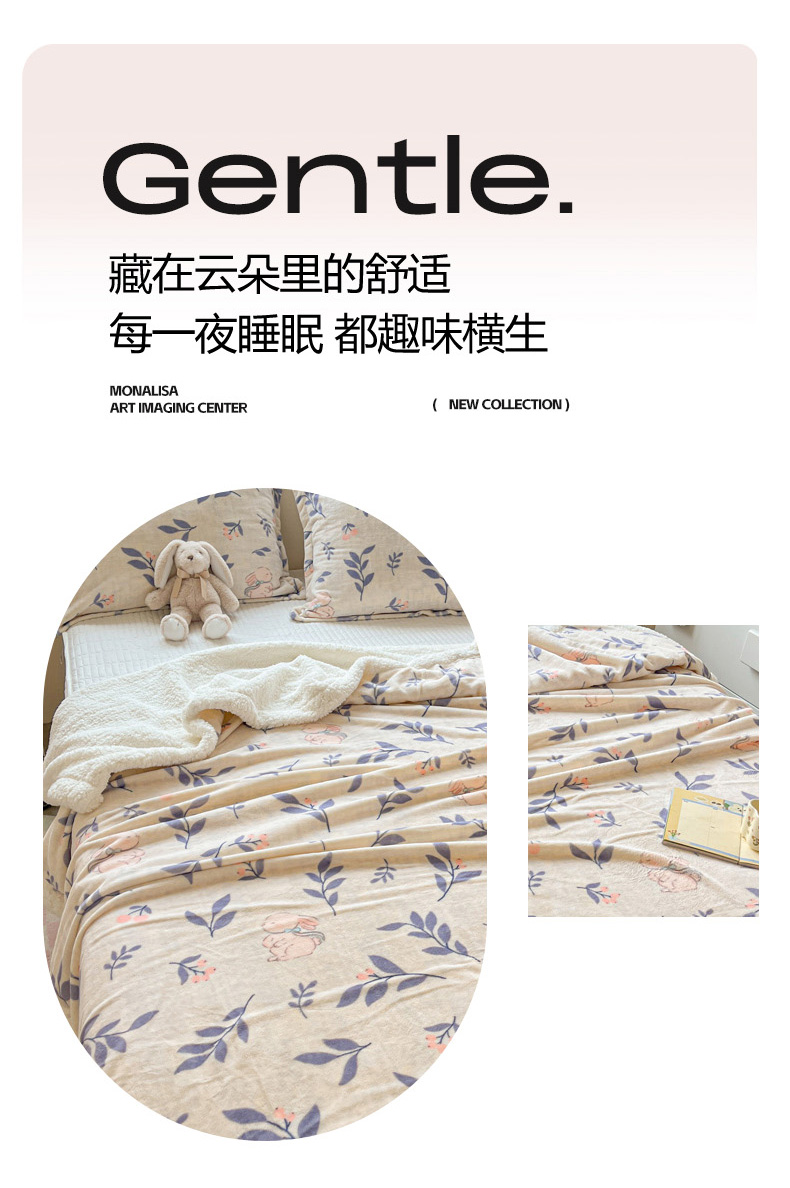 商品名称:沐慕 2024新款AB版牛奶绒拼羊羔绒毛毯毯子 毛毯-兔稚
