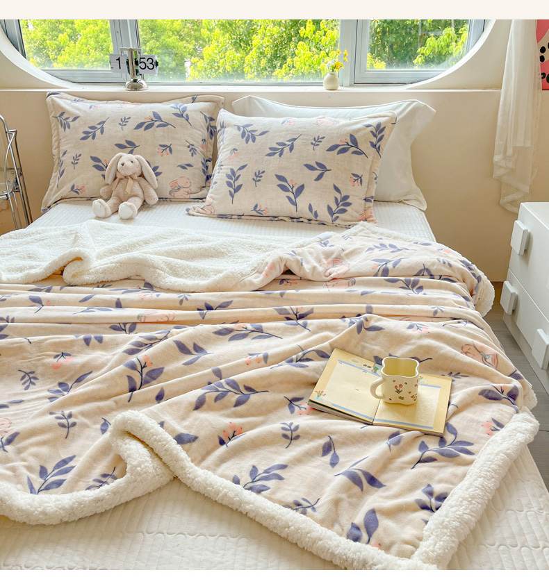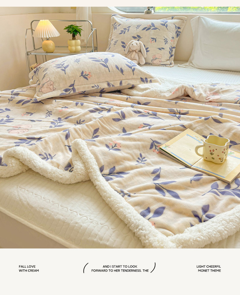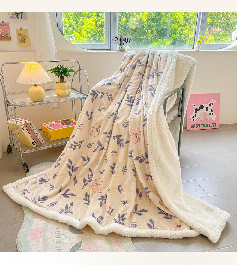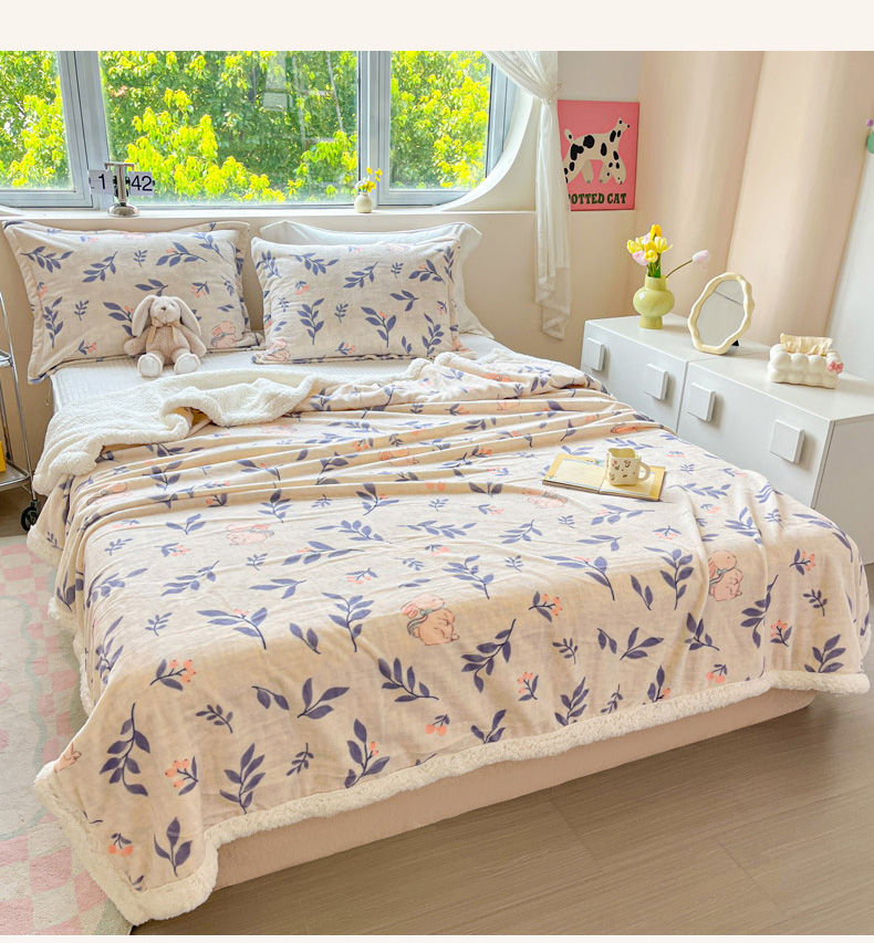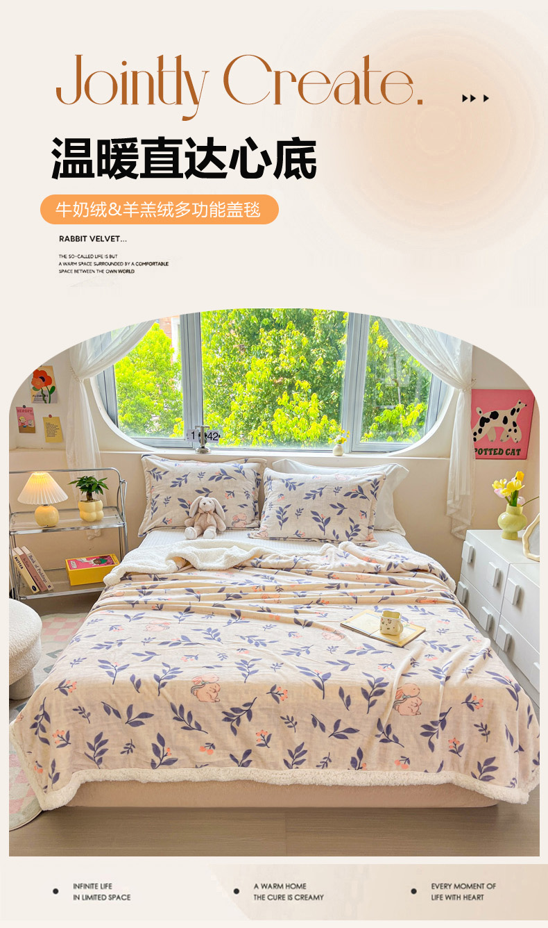 沐慕 2024新款AB版牛奶绒拼羊羔绒毛毯毯子 毛毯-兔稚