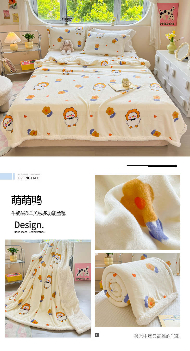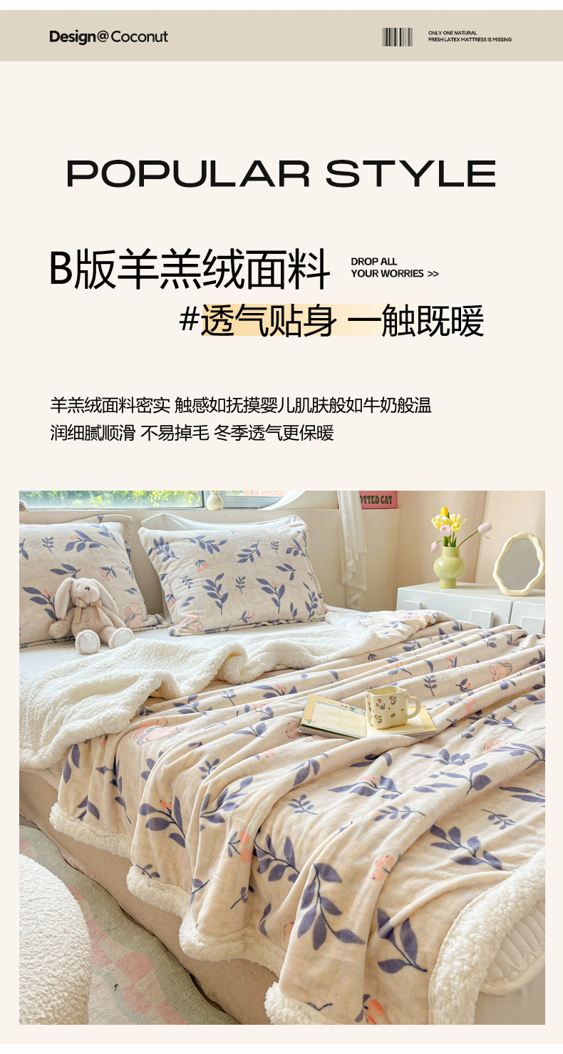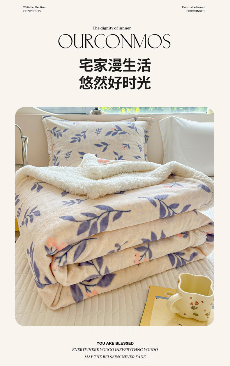 沐慕 2024新款AB版牛奶绒拼羊羔绒毛毯毯子 毛毯-兔稚