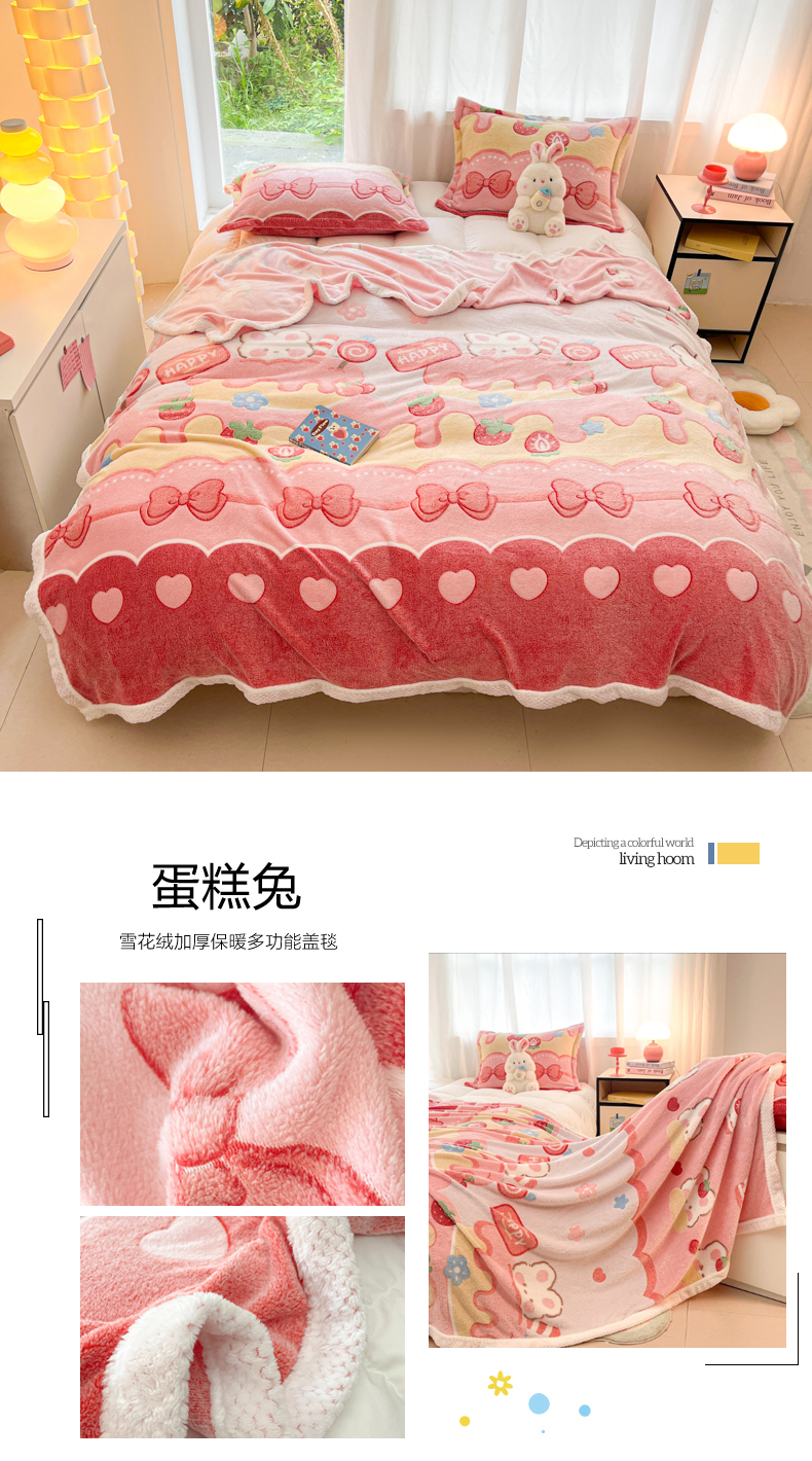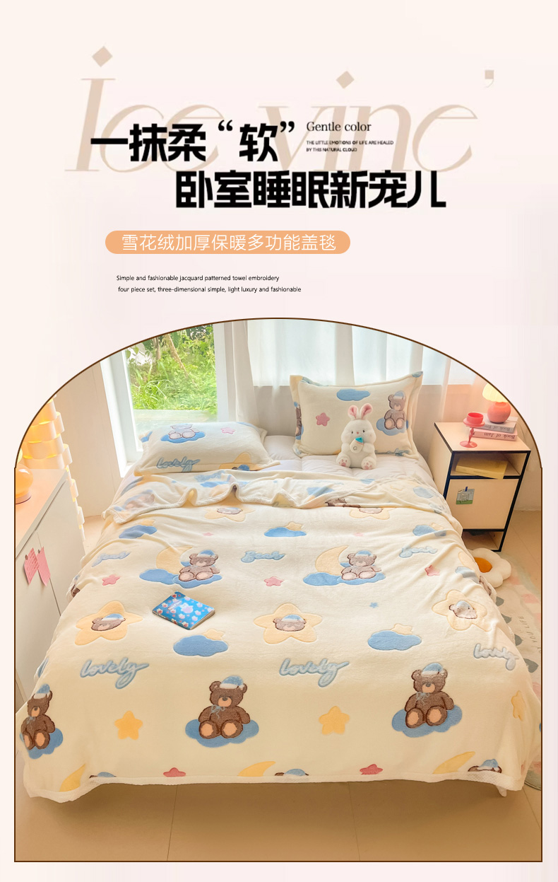 沐慕 2024新款加厚雪花绒菠萝格宽幅包边毛毯 毛毯-可爱熊