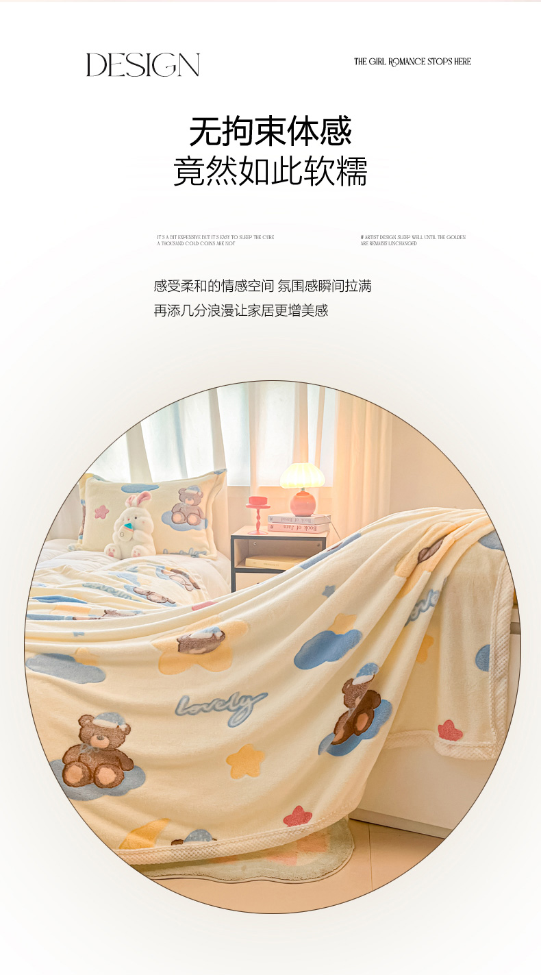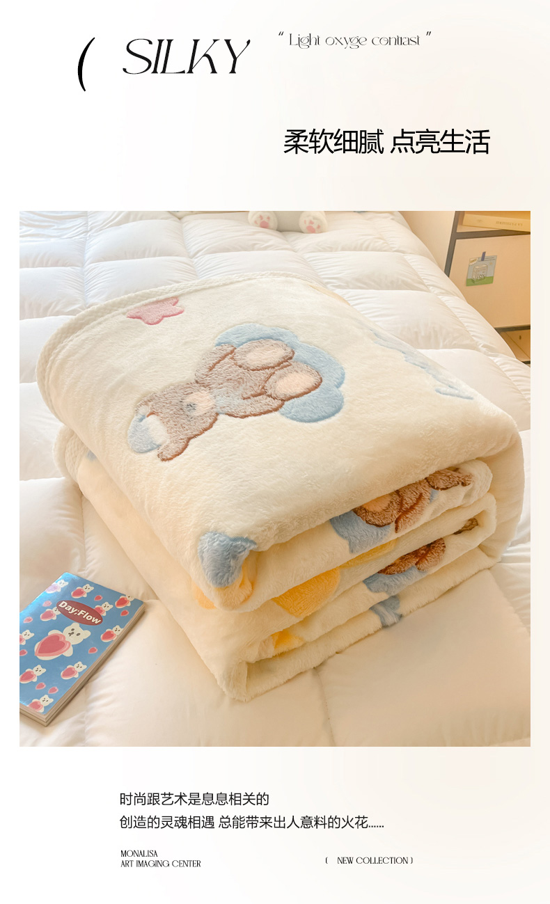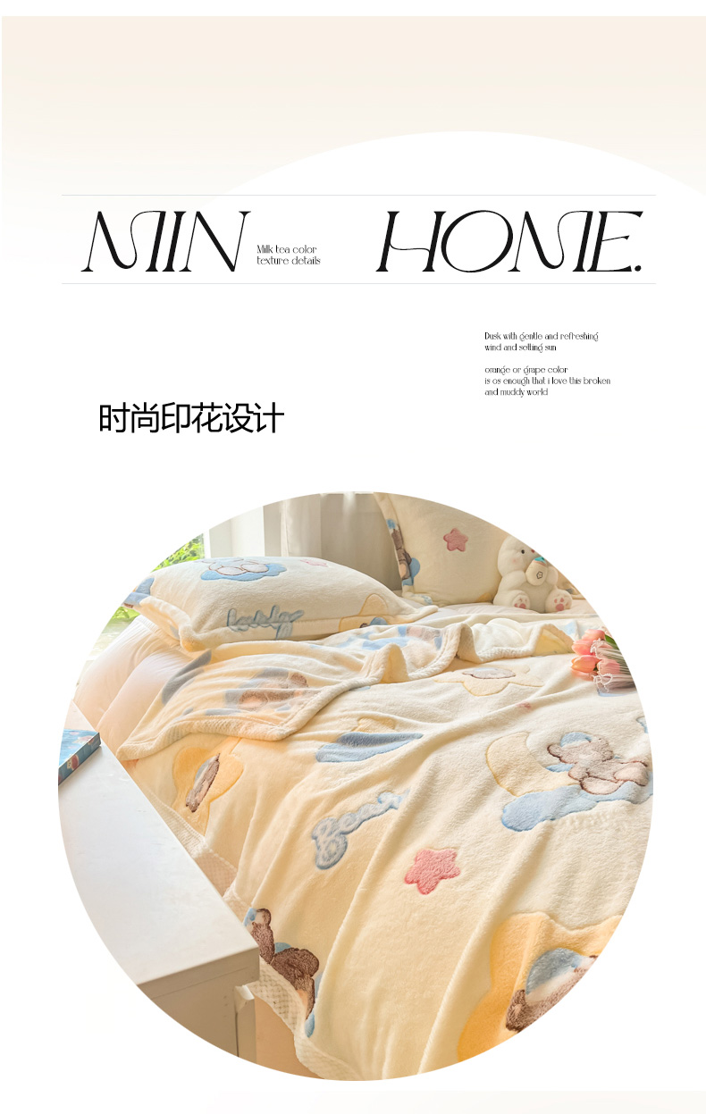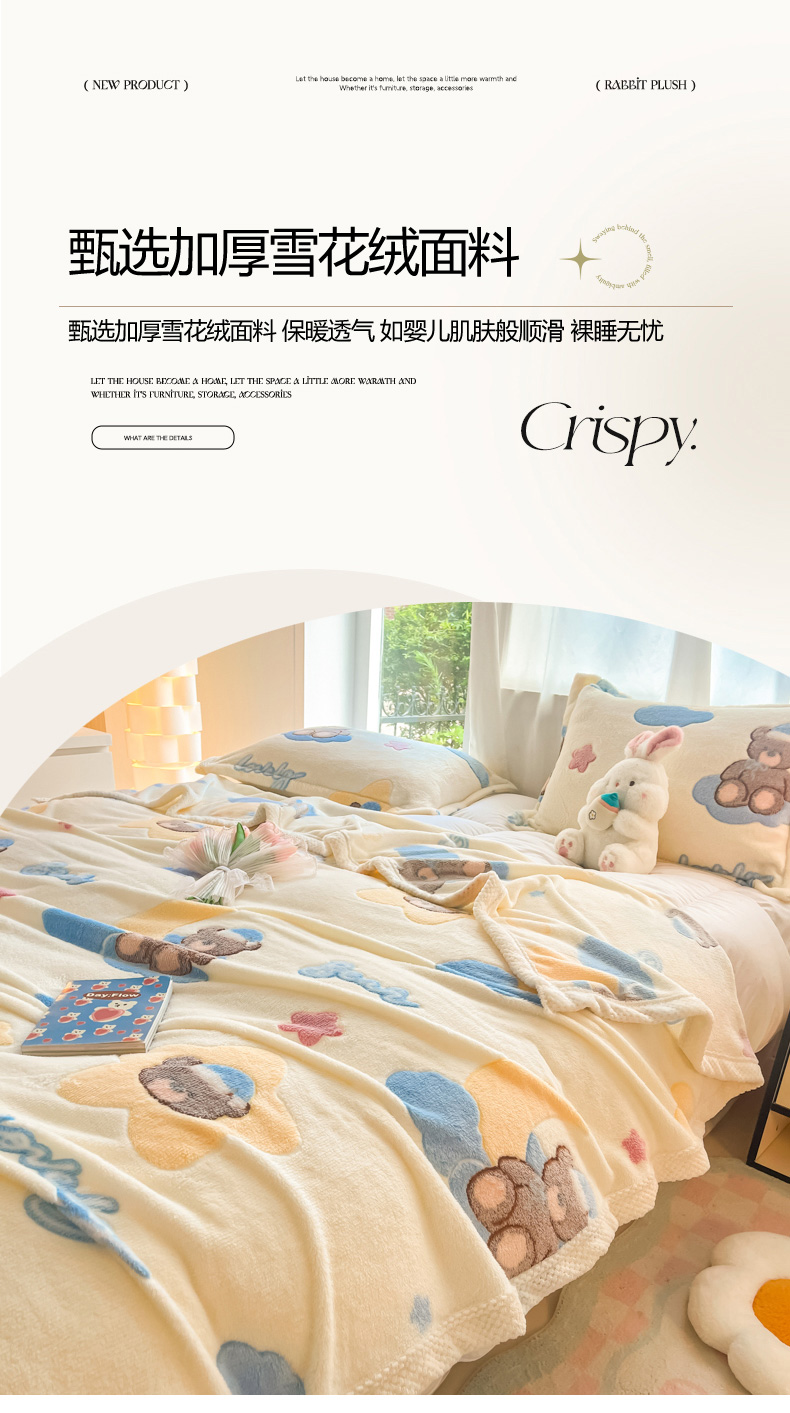 商品名称:沐慕 2024新款加厚雪花绒菠萝格宽幅包边毛毯 毛毯-可爱熊