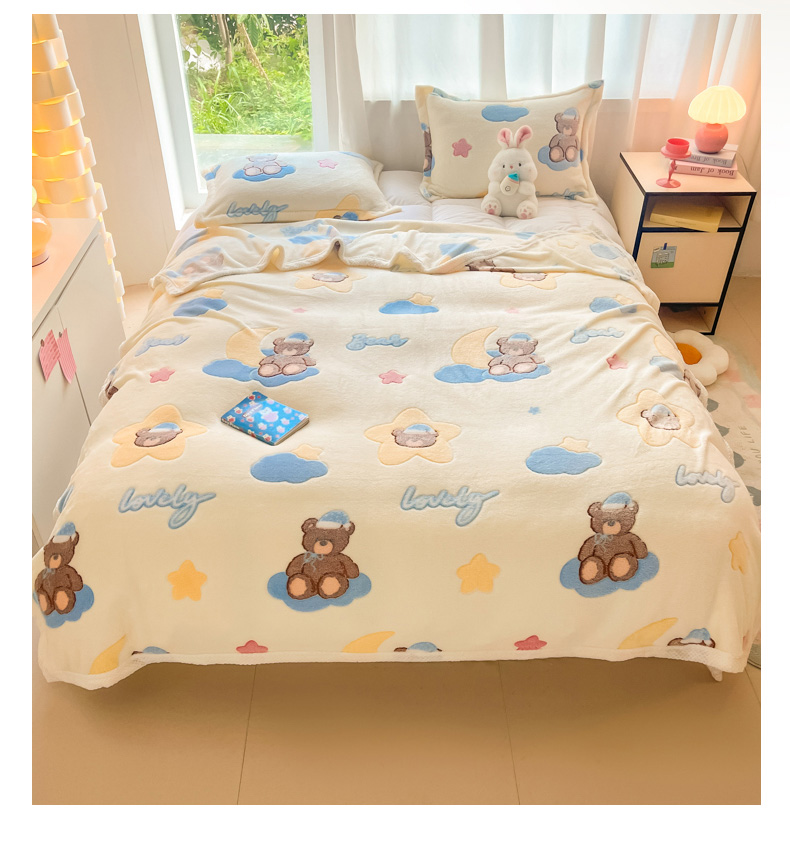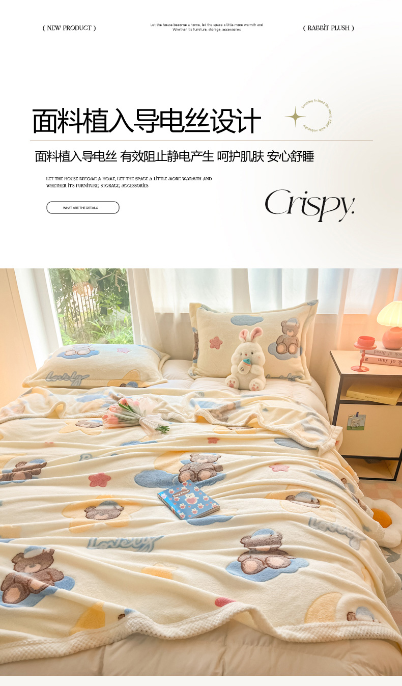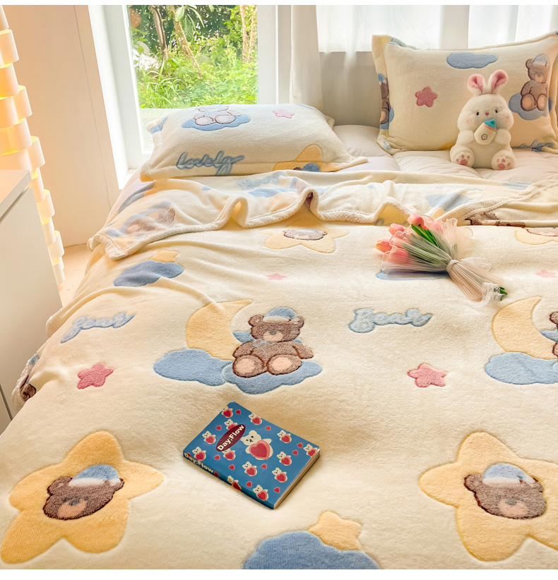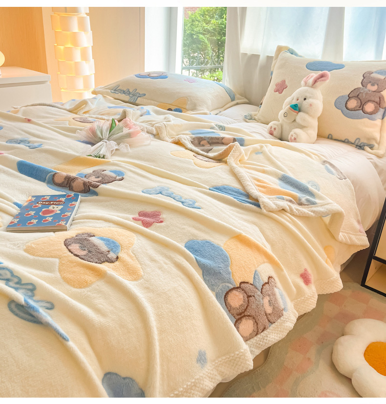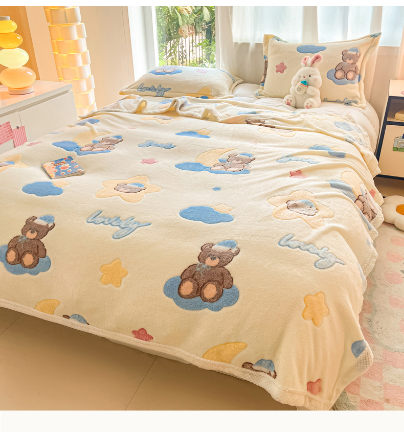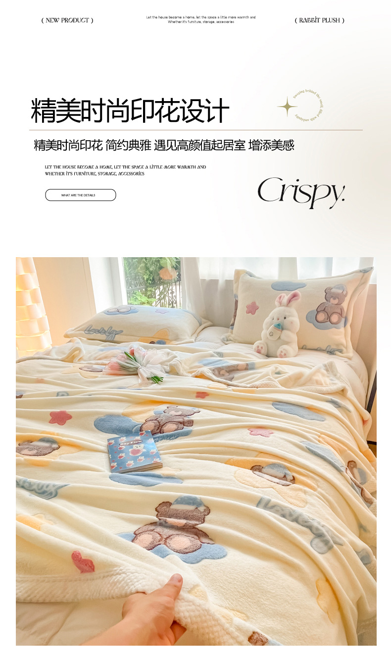 商品名称:沐慕 2024新款加厚雪花绒菠萝格宽幅包边毛毯 毛毯-可爱熊