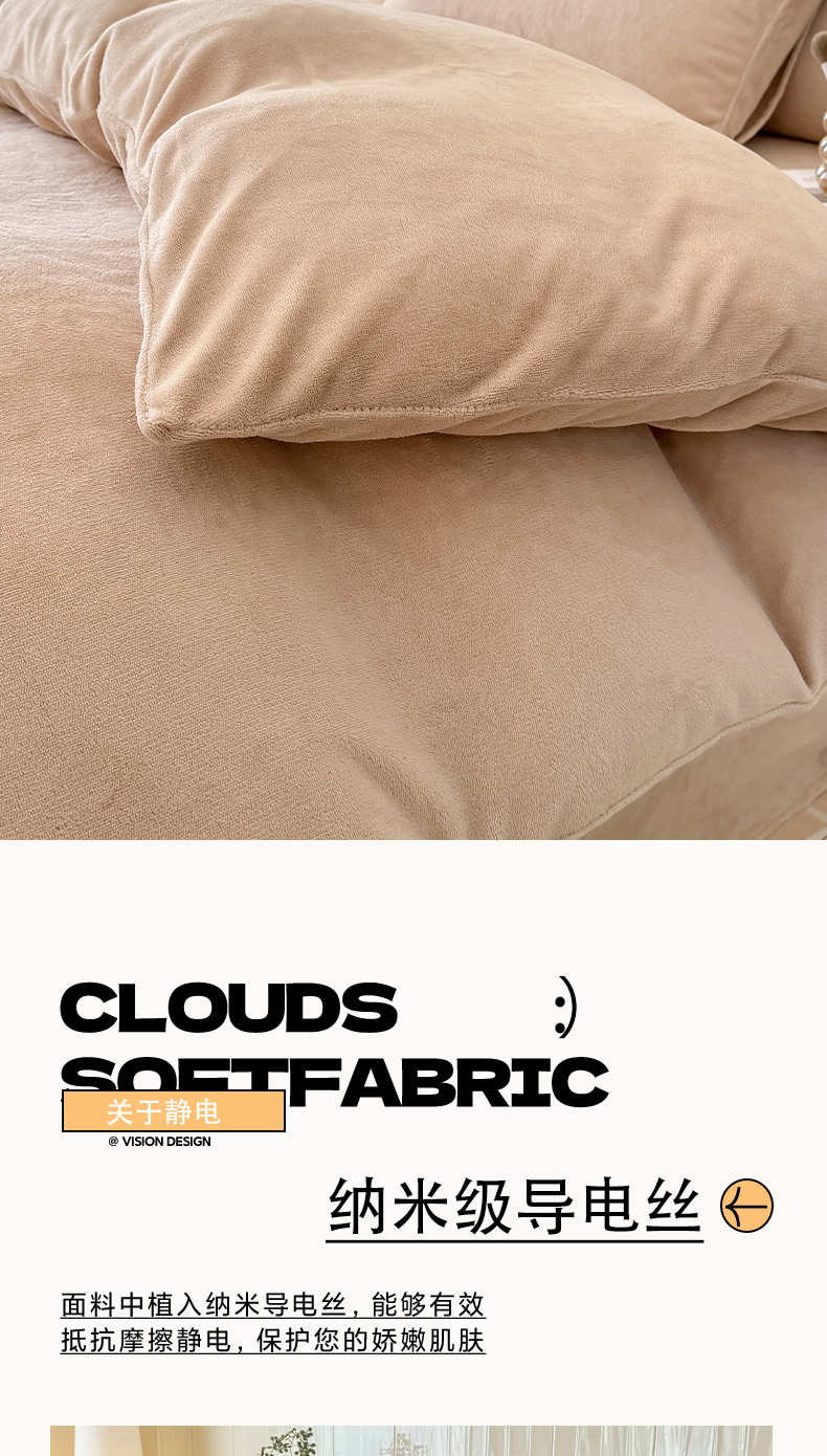 商品名称:牛牛家纺 2025新款A类牛奶绒双拼四件套 卡其棕
