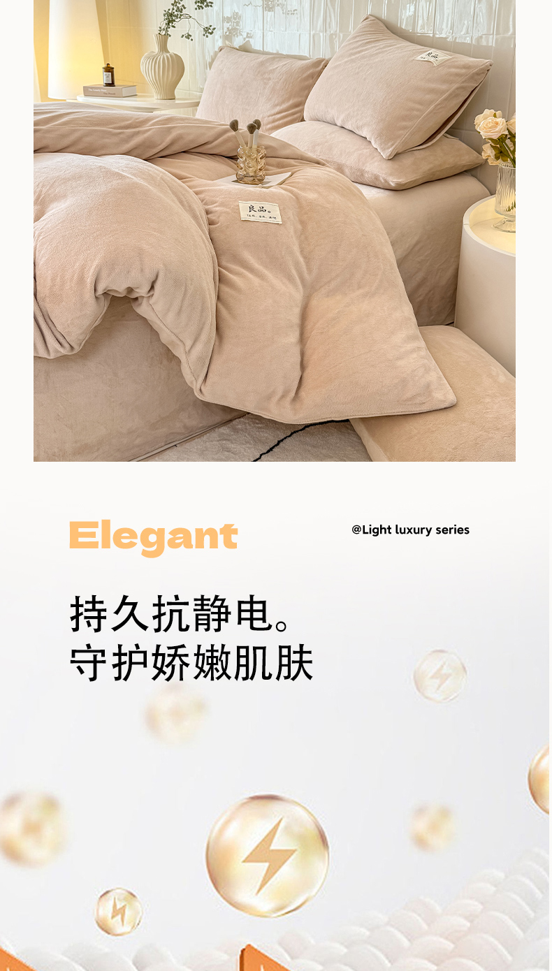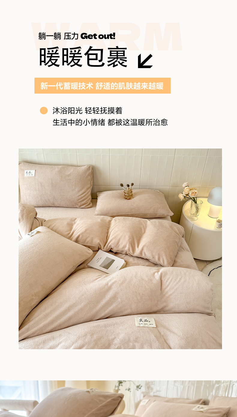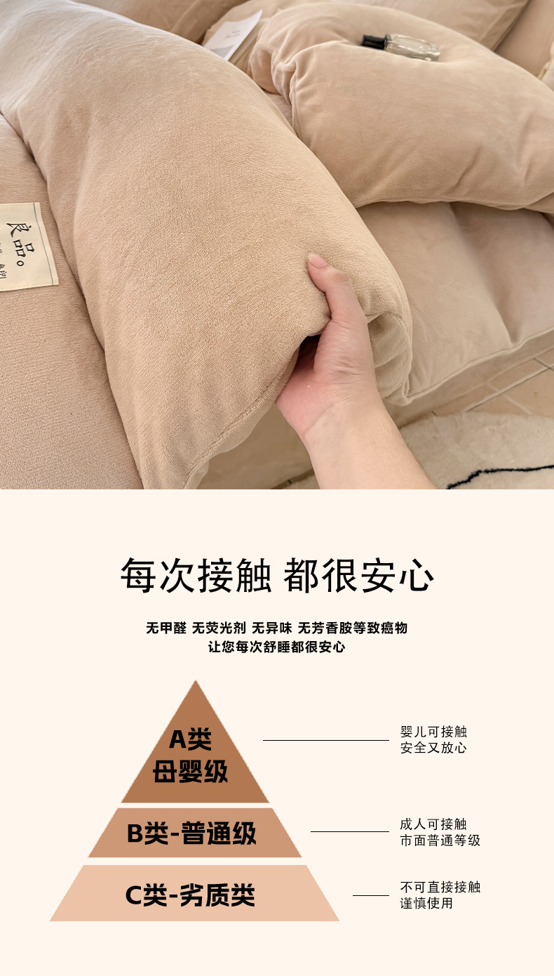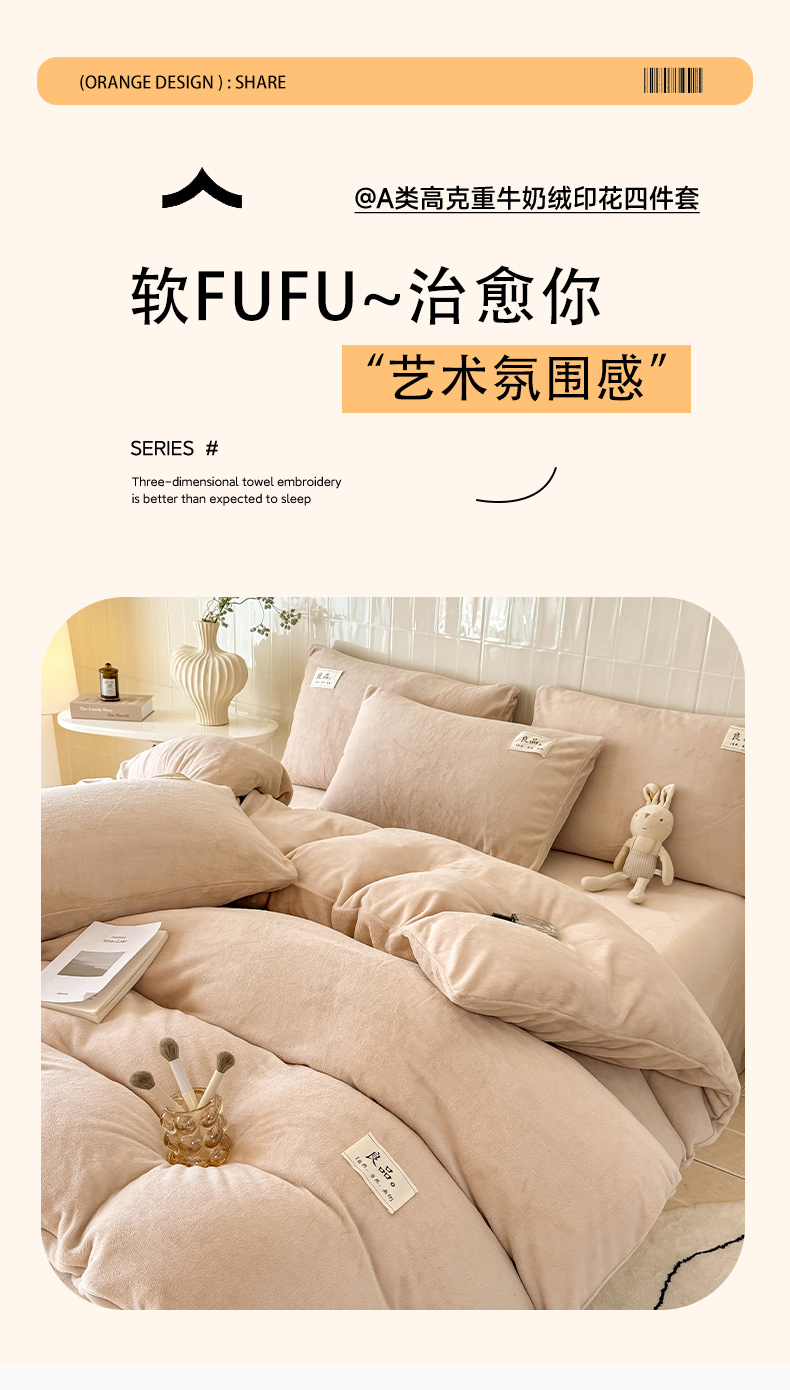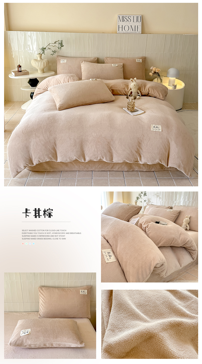 牛牛家纺 2025新款A类牛奶绒双拼四件套 卡其棕