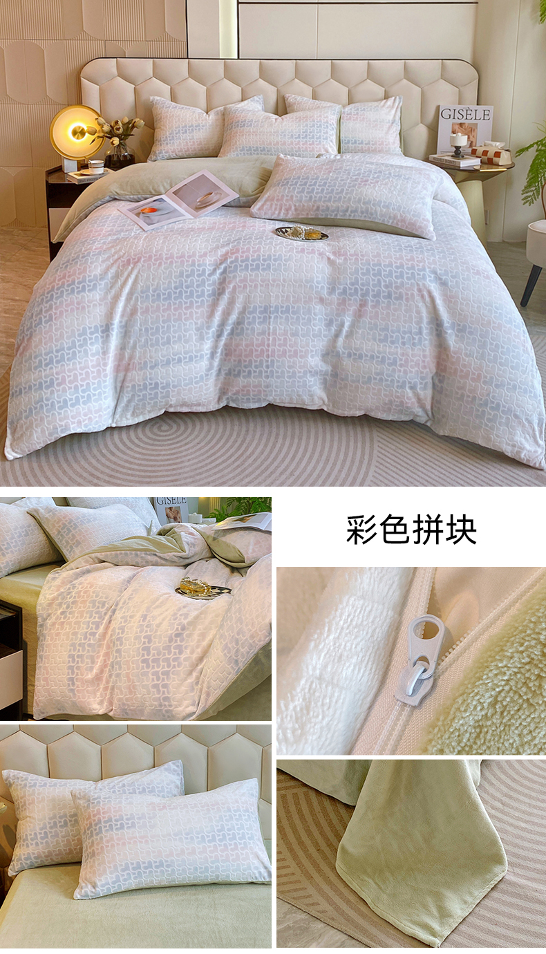 佰亿莱 2024新款雕花牛奶绒四件套 彩色拼块