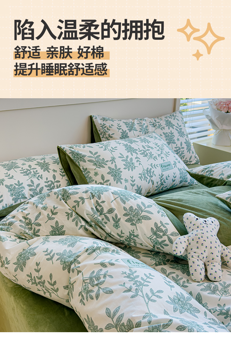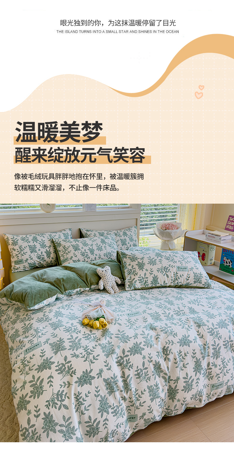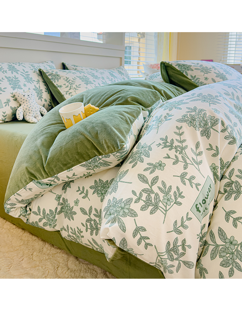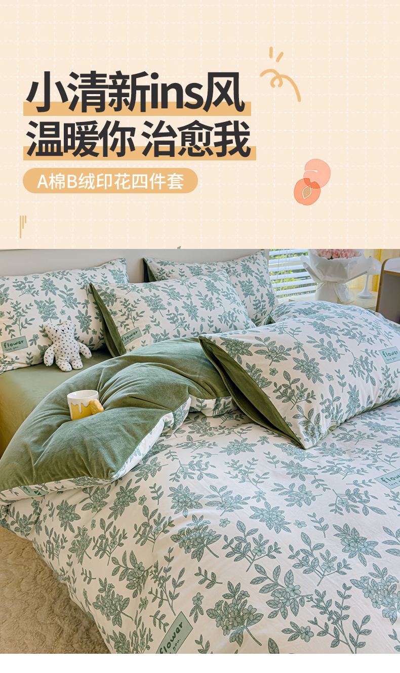 当前位置: 91家纺网 > 商品网购 > 床品套件 > 四件套 > 其它四件套 > 清雅福 2024新款小清新ins棉加绒印花四件套系列-棉绒风格一 棉绒绿意黯然