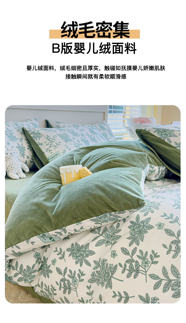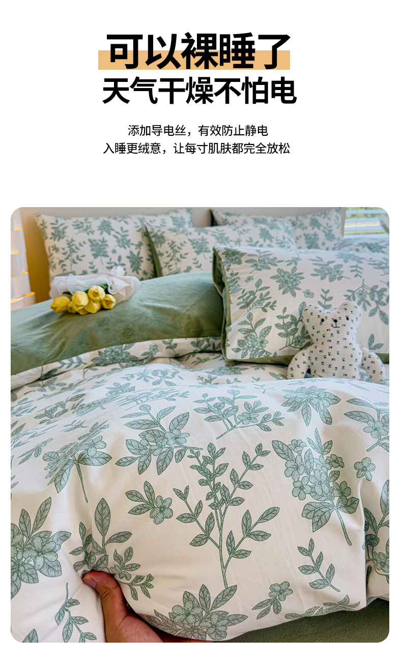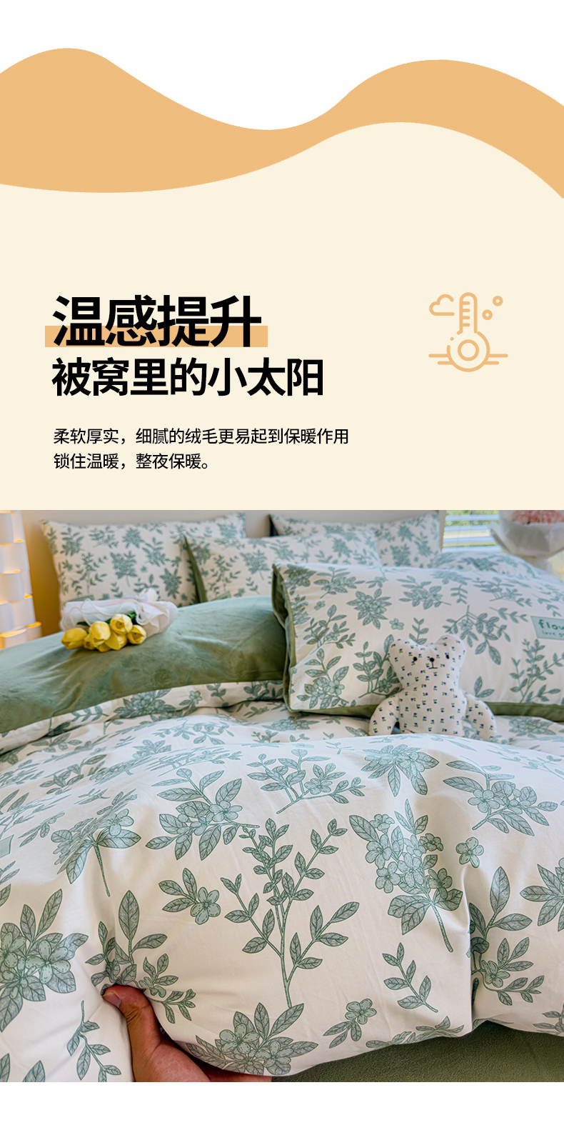 当前位置: 91家纺网 > 商品网购 > 床品套件 > 四件套 > 其它四件套 > 清雅福 2024新款小清新ins棉加绒印花四件套系列-棉绒风格一 棉绒绿意黯然
