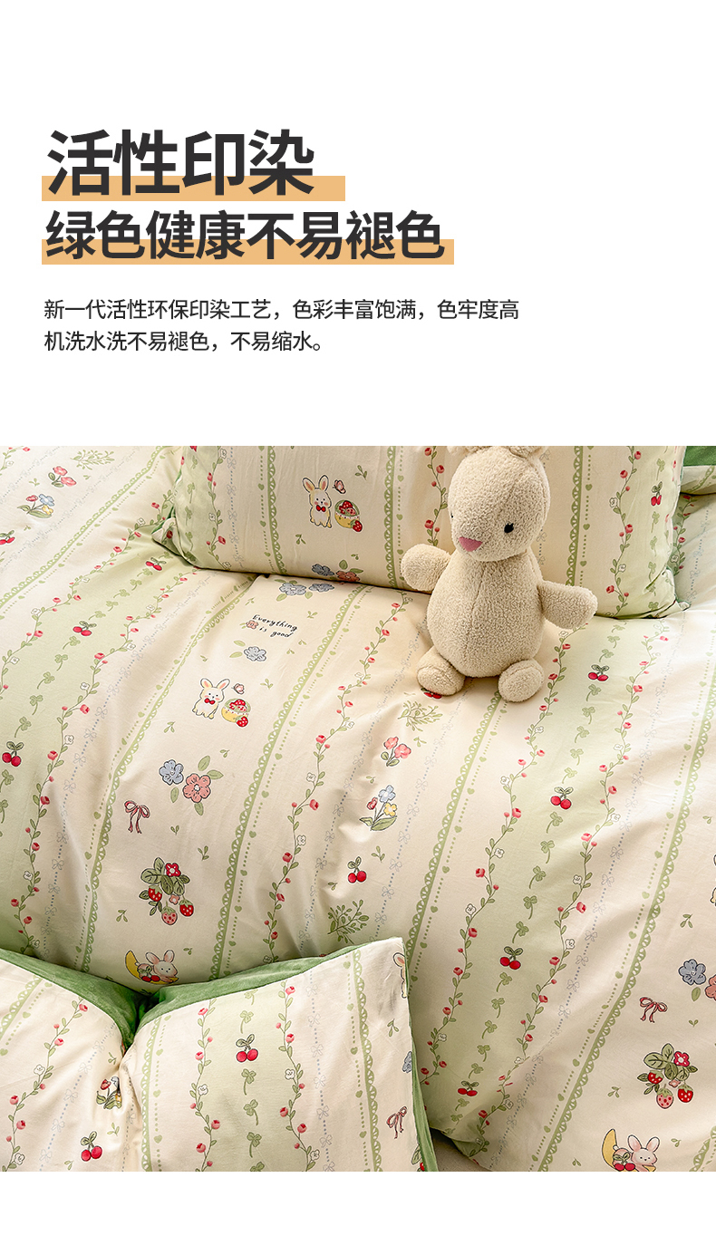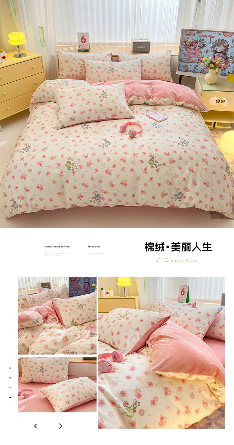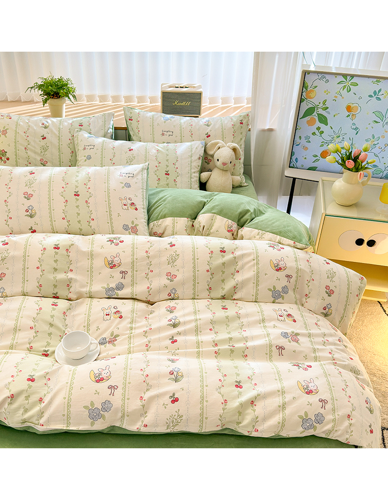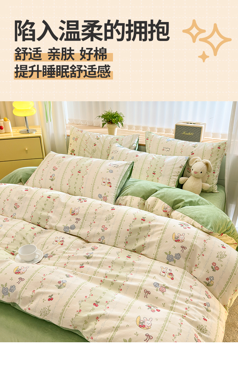当前位置: 91家纺网 > 商品网购 > 床品套件 > 四件套 > 其它四件套 > 清雅福 2024新款小清新ins棉加绒印花四件套系列-棉绒风格二 草莓兔