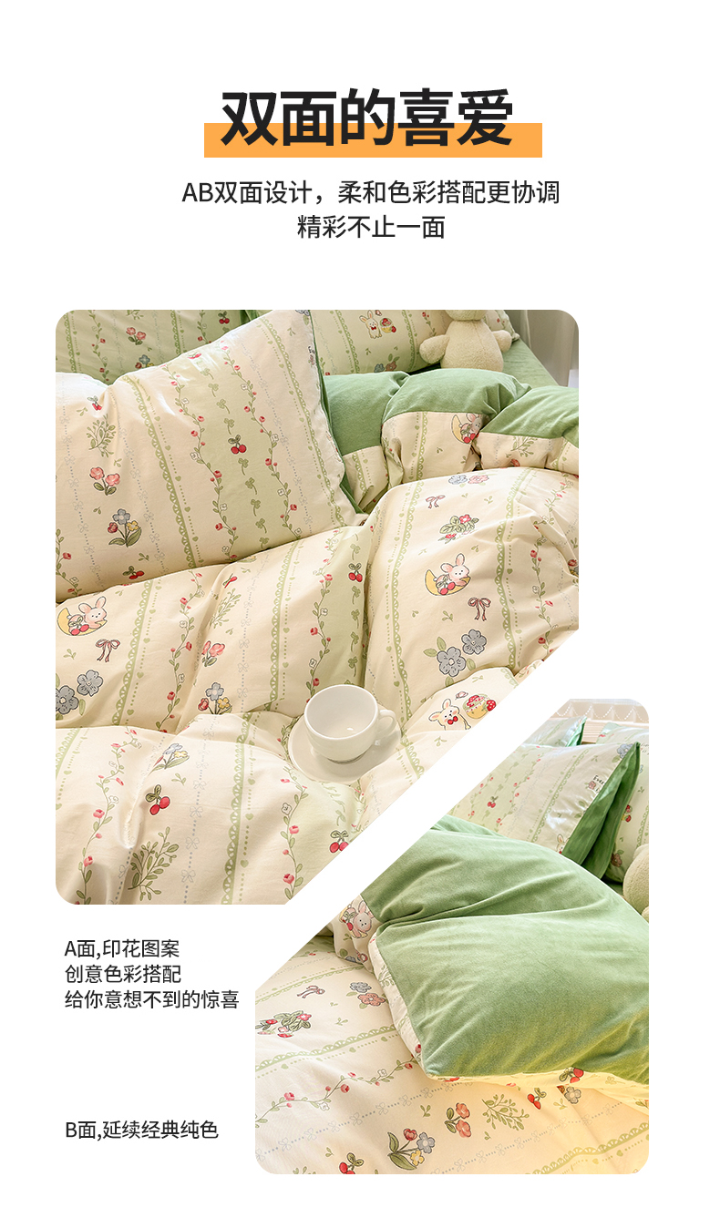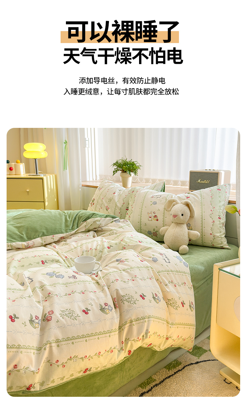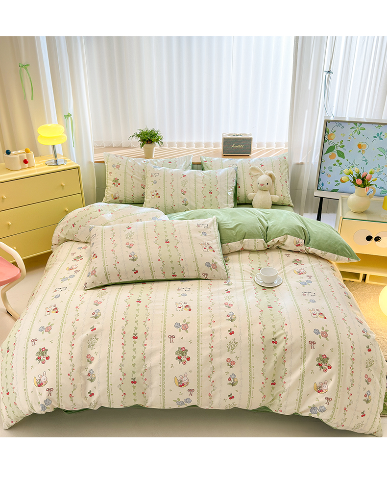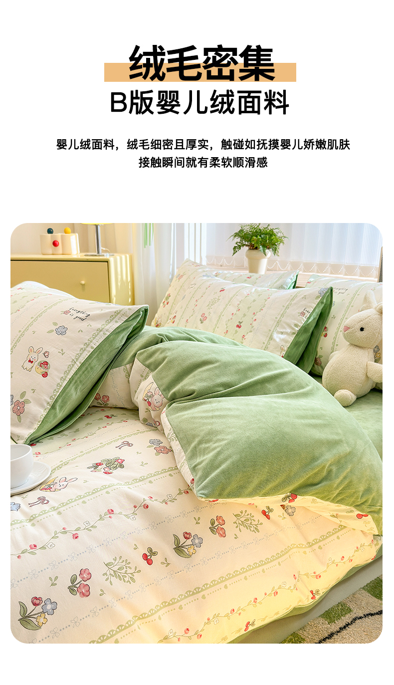 当前位置: 91家纺网 > 商品网购 > 床品套件 > 四件套 > 其它四件套 > 清雅福 2024新款小清新ins棉加绒印花四件套系列-棉绒风格二 草莓兔