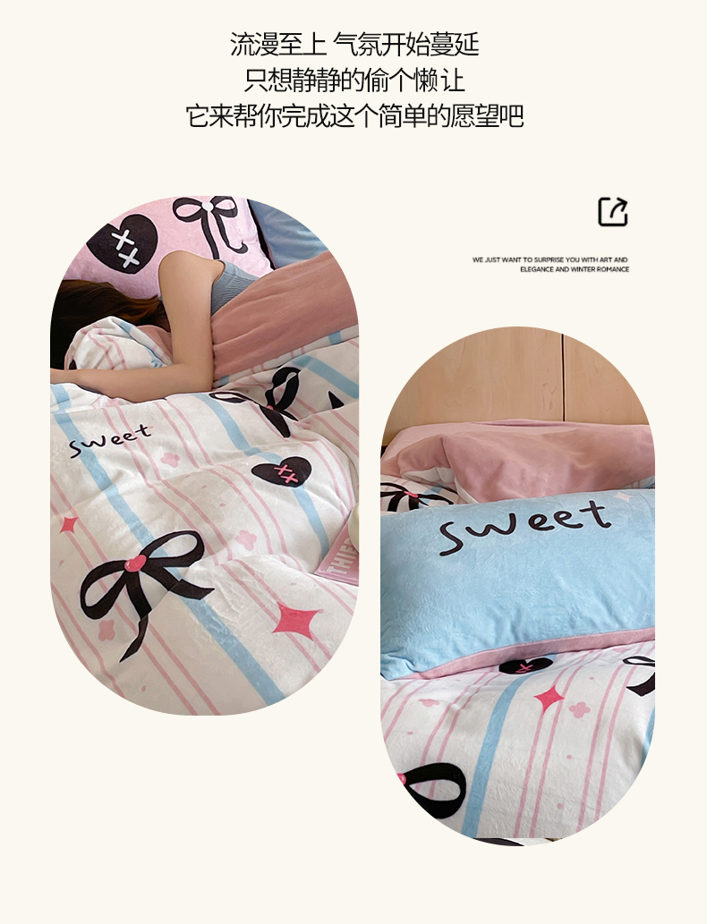 商品名称:羚羊语家纺 2024新款ins博主风牛奶绒四件套数码印花小红书爆款秋冬加厚宝宝绒婴儿绒法莱绒法兰绒珊瑚绒三件套 奶油夹心
