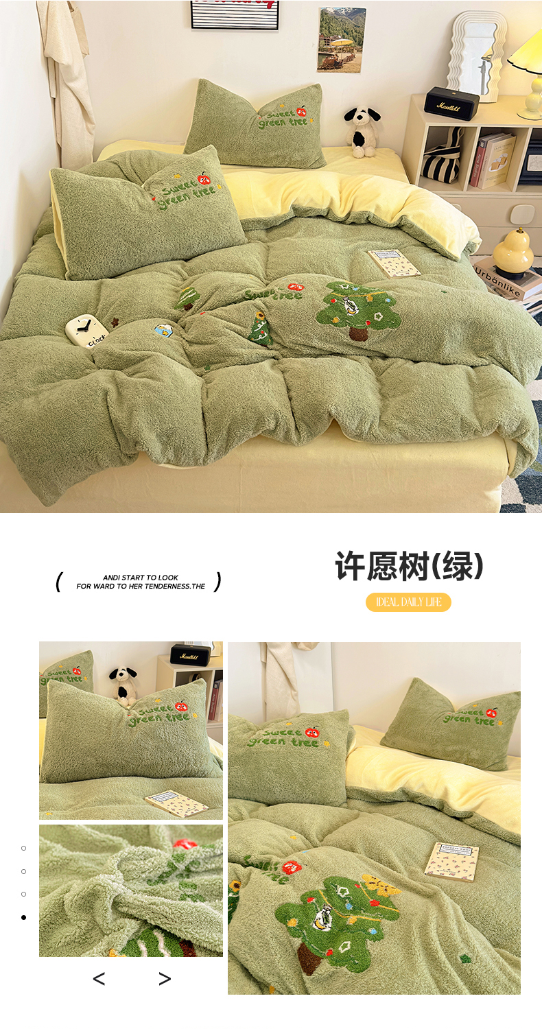 商品名称:春光里 2024新款泰迪绒230克牛奶绒毛巾绣四件套(提供买家秀) 许愿树(绿)