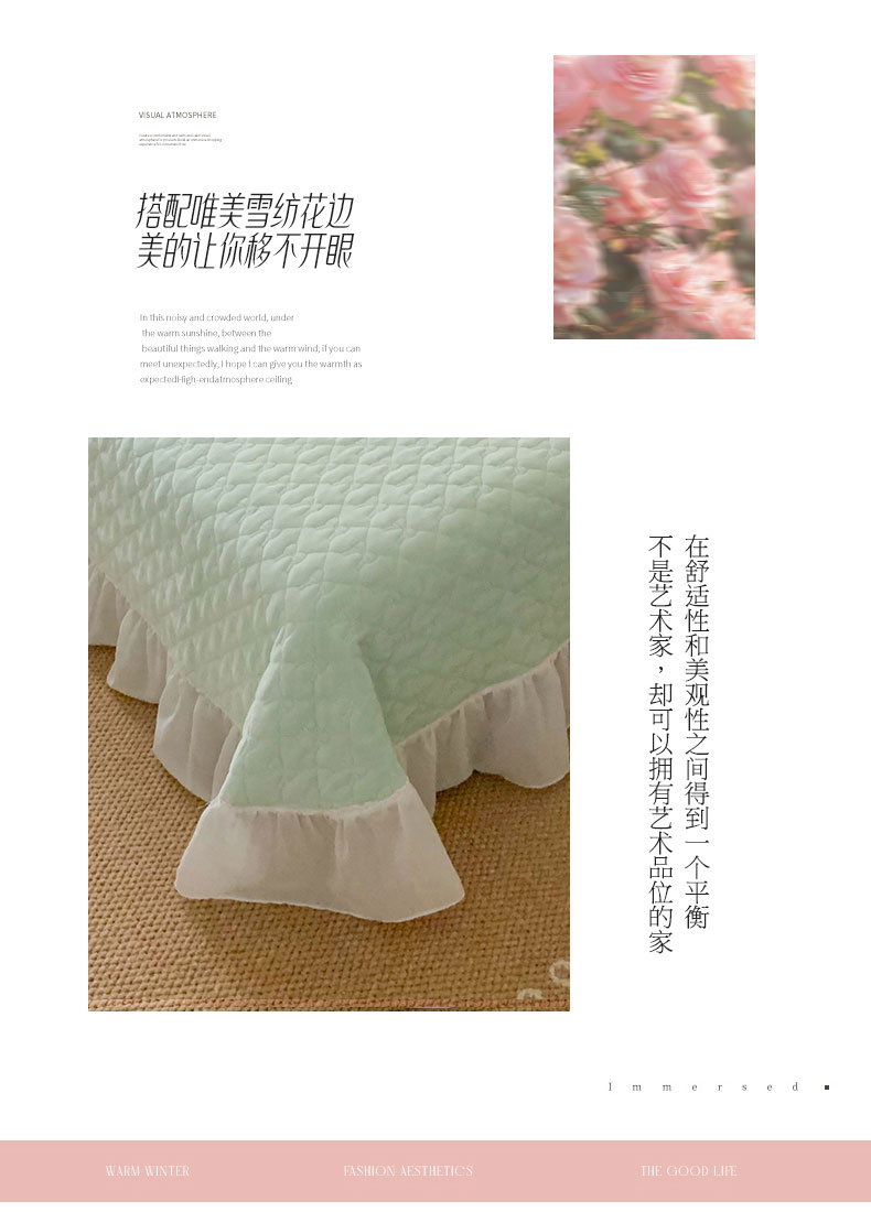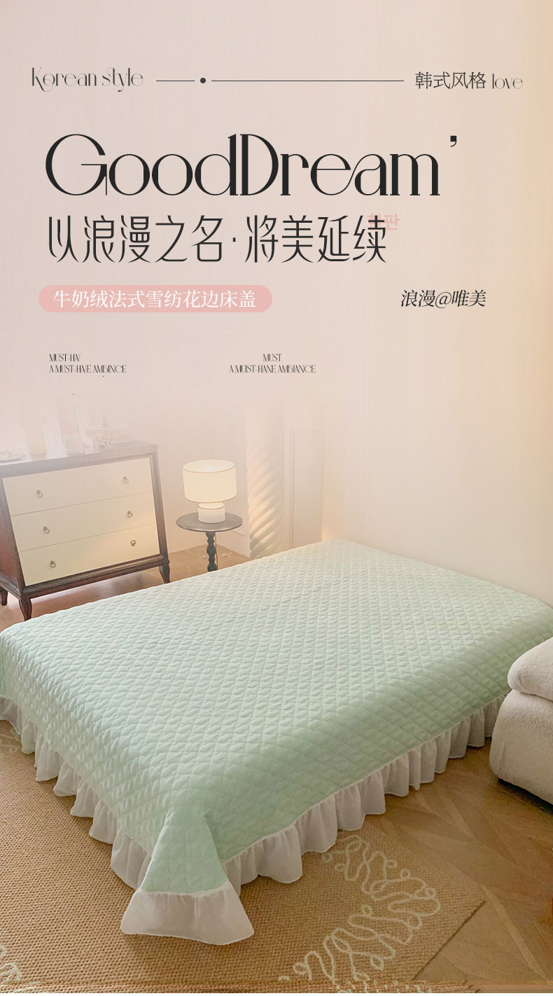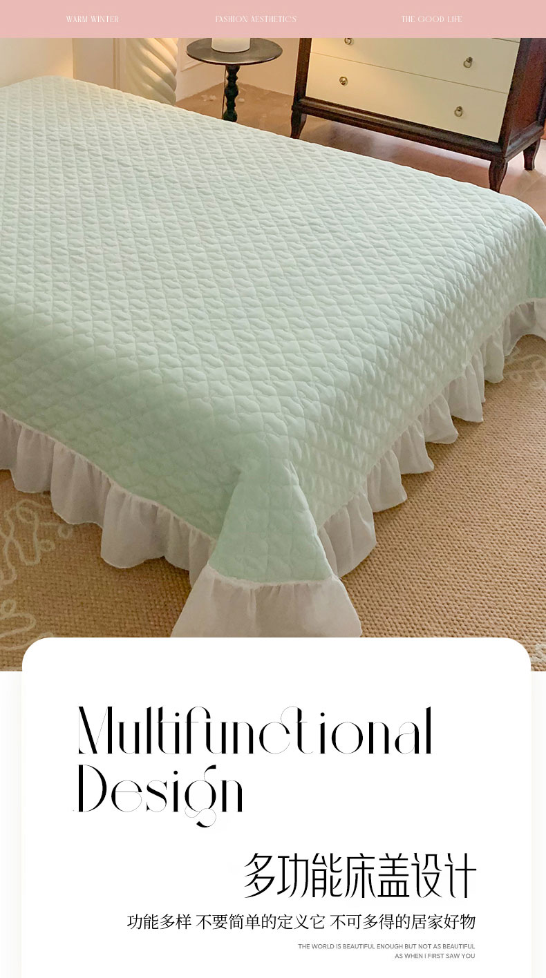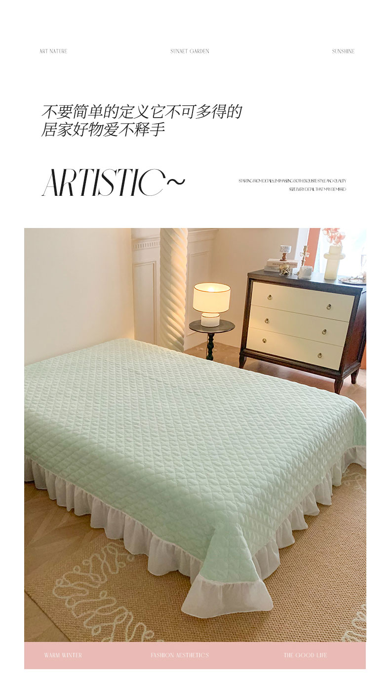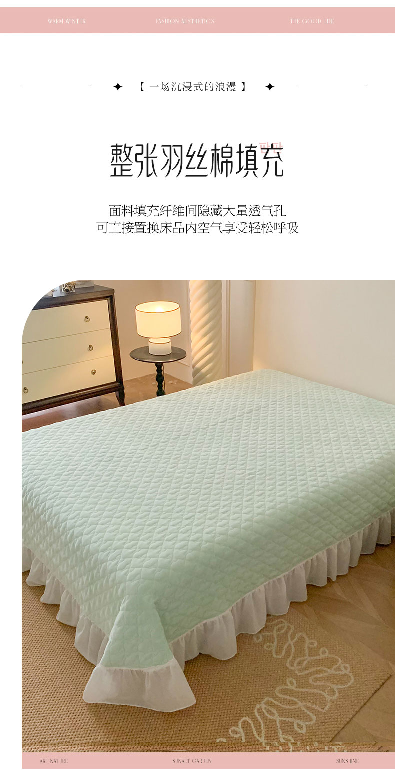 (总)吾欢心 2025新款公主风雪纺边四季通用夹棉床盖,床盖白,床盖粉,床盖黄,床盖咖,床盖绿,床盖抹茶绿,床盖紫