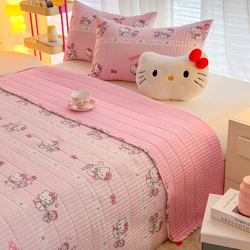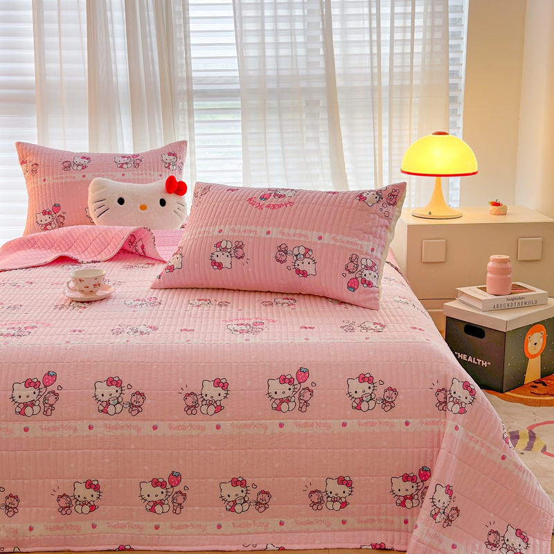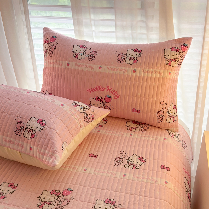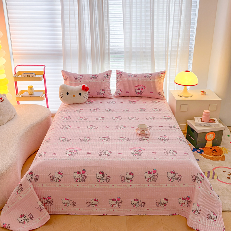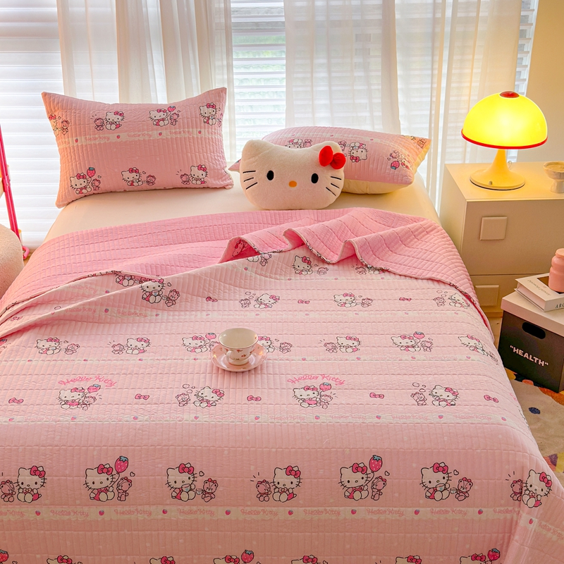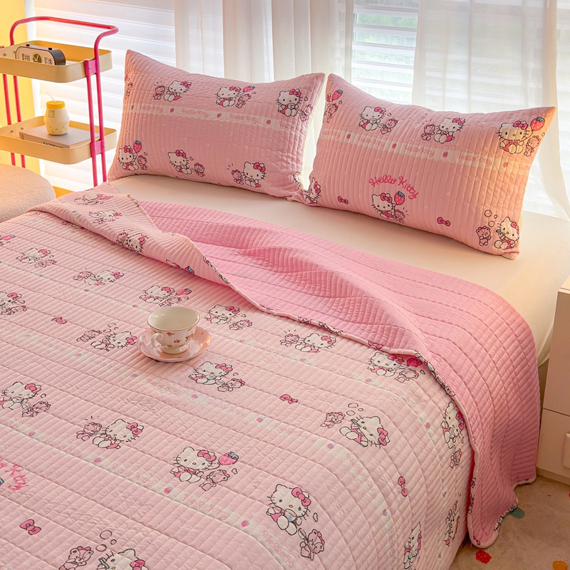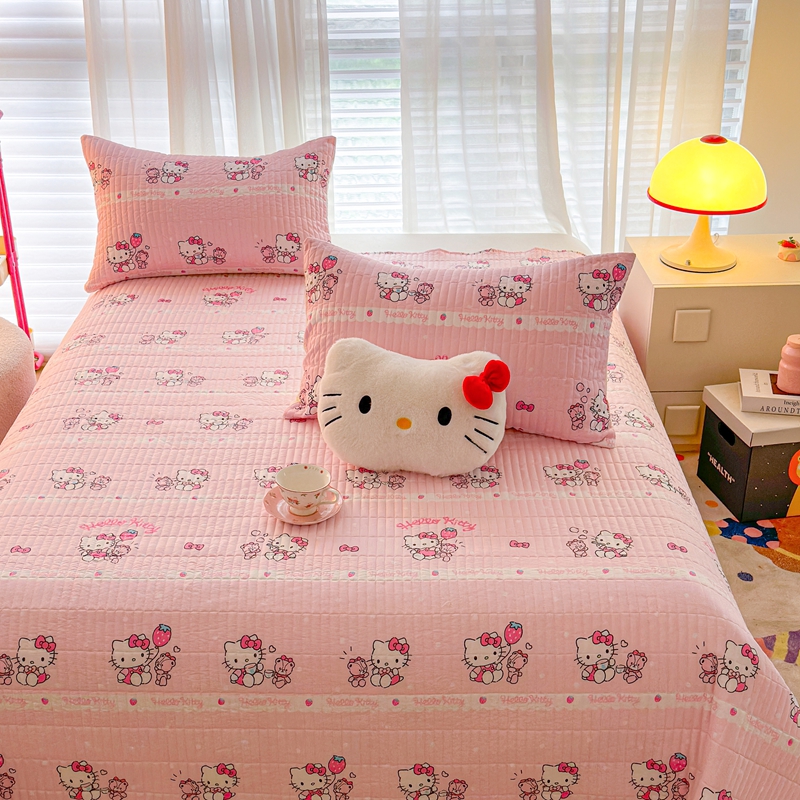 当前位置: 91家纺网 > 商品网购 > 床上用品 > 床盖 > 八方汇(一户被芯生活馆) 2024新款亲肤水洗棉卡通三丽鸥床盖三件套 草莓甜心kt猫