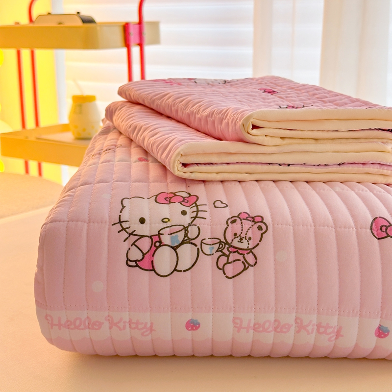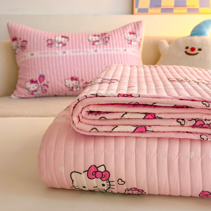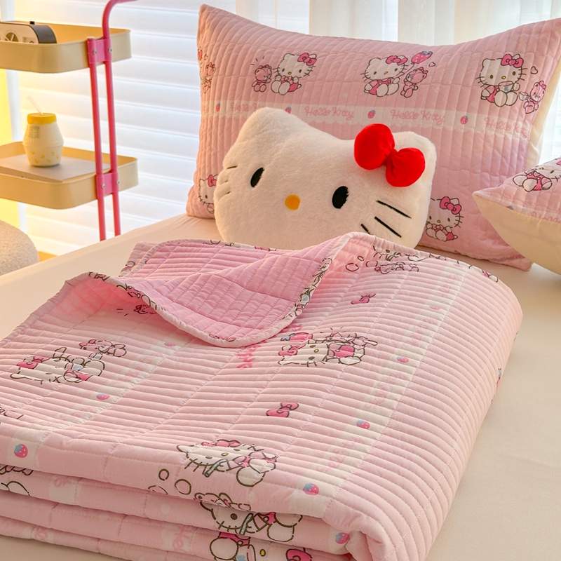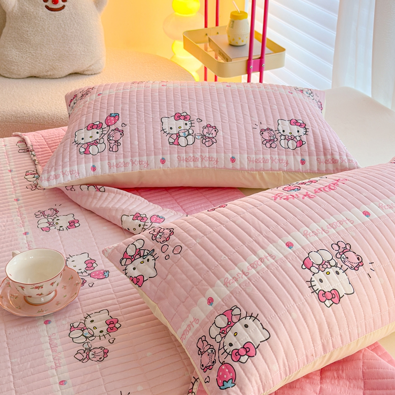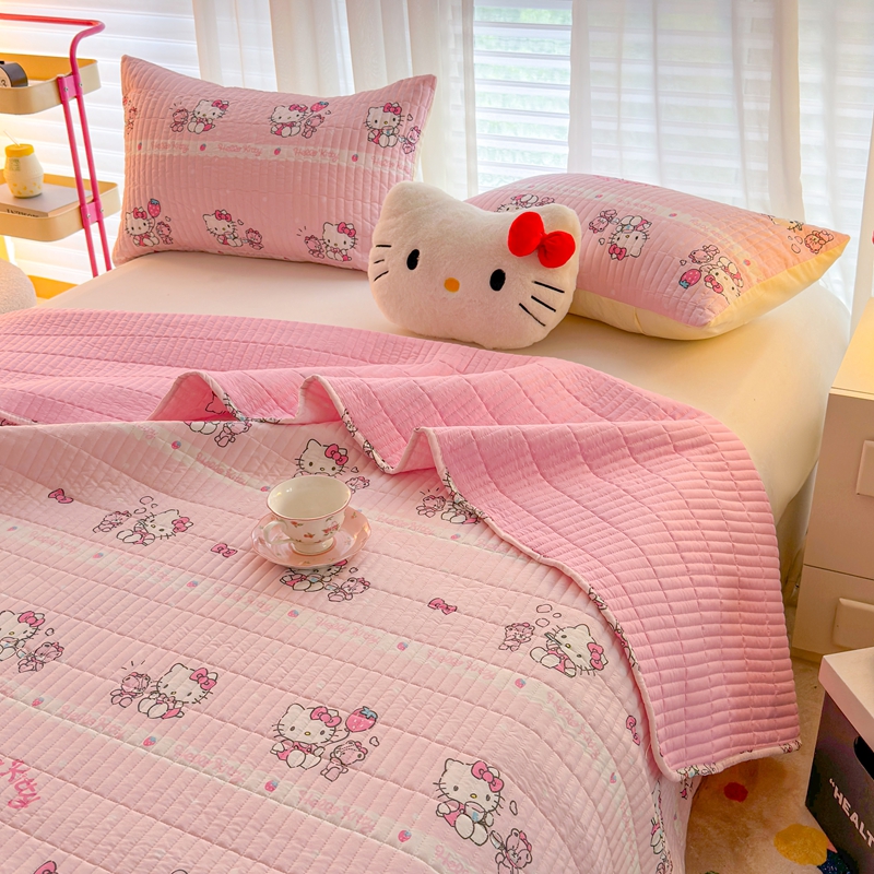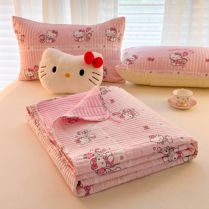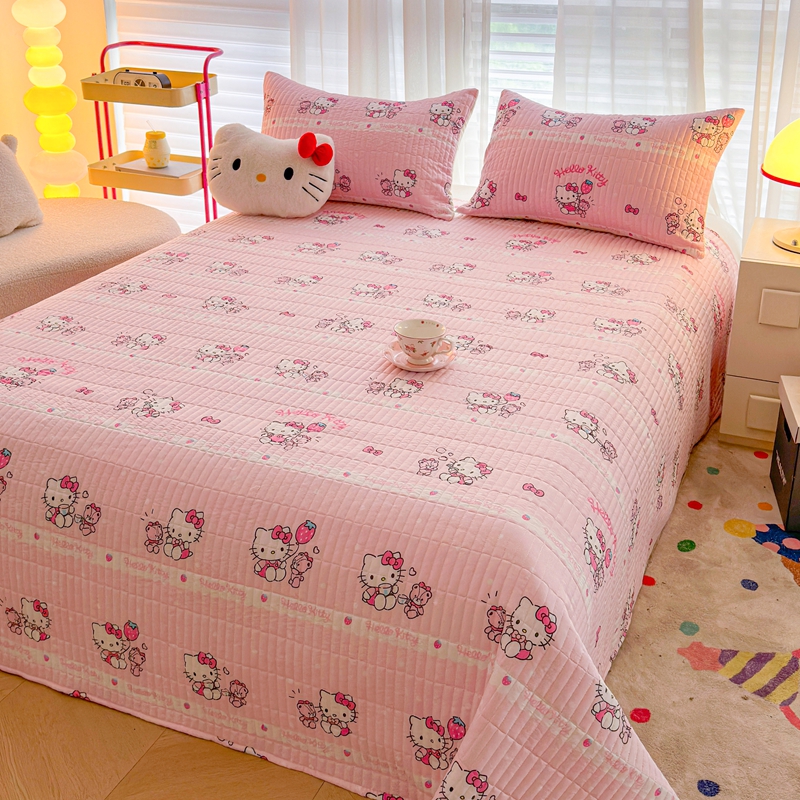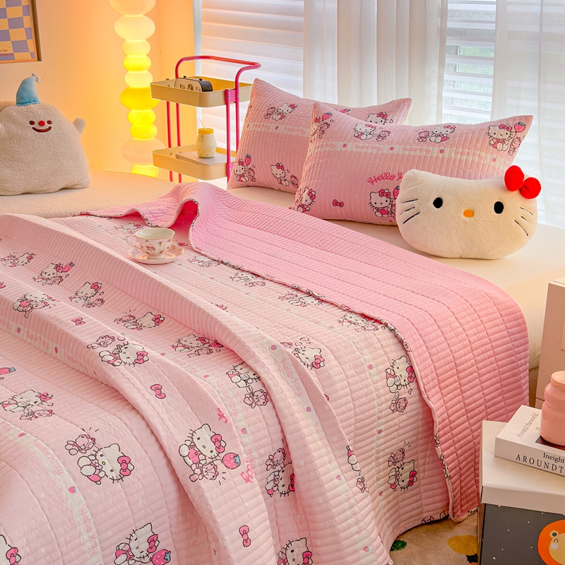当前位置: 91家纺网 > 商品网购 > 床上用品 > 床盖 > 八方汇(一户被芯生活馆) 2024新款亲肤水洗棉卡通三丽鸥床盖三件套 草莓甜心kt猫