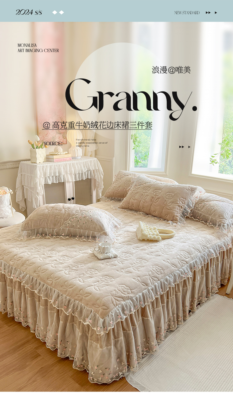 (总)网红馆(ck家纺) 2025新款高克重牛奶绒床裙四件套-卡妮娜系列,卡妮娜-粉色,卡妮娜-灰色,卡妮娜-卡其,卡妮娜-绿色,卡妮娜-米色