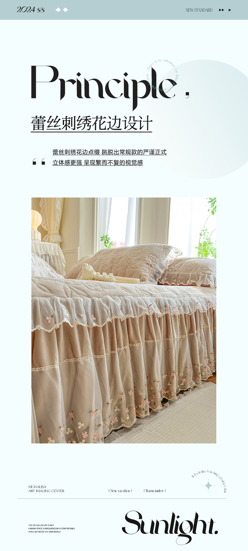 (总)网红馆(ck家纺) 2025新款色织提花牛奶绒床裙四件套-洛丽塔系列,洛丽塔-豆沙,洛丽塔-蓝色,洛丽塔-米色