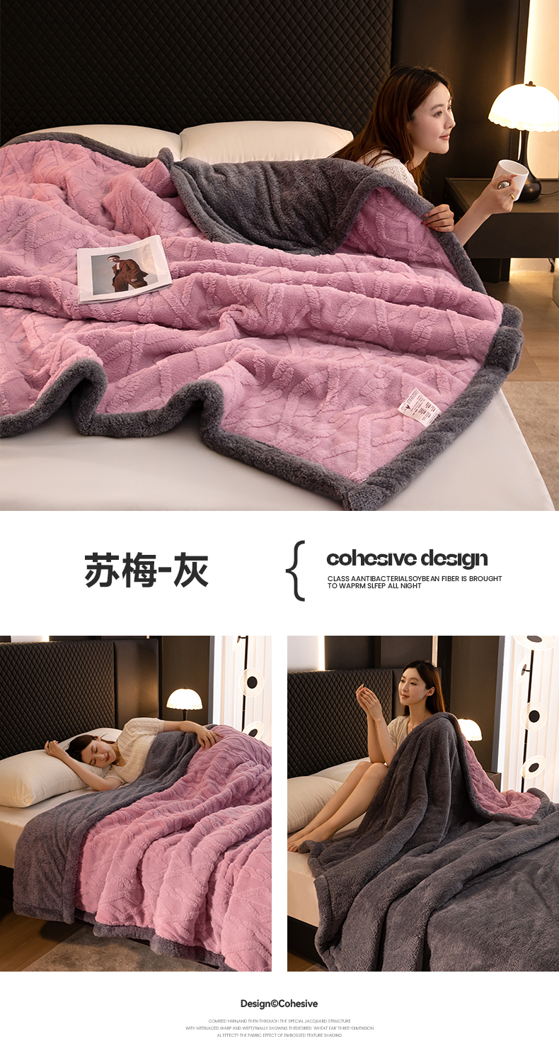 商品名称:澳梵家居 2024新款三层夹棉加厚塔肤绒毛毯 苏梅-灰