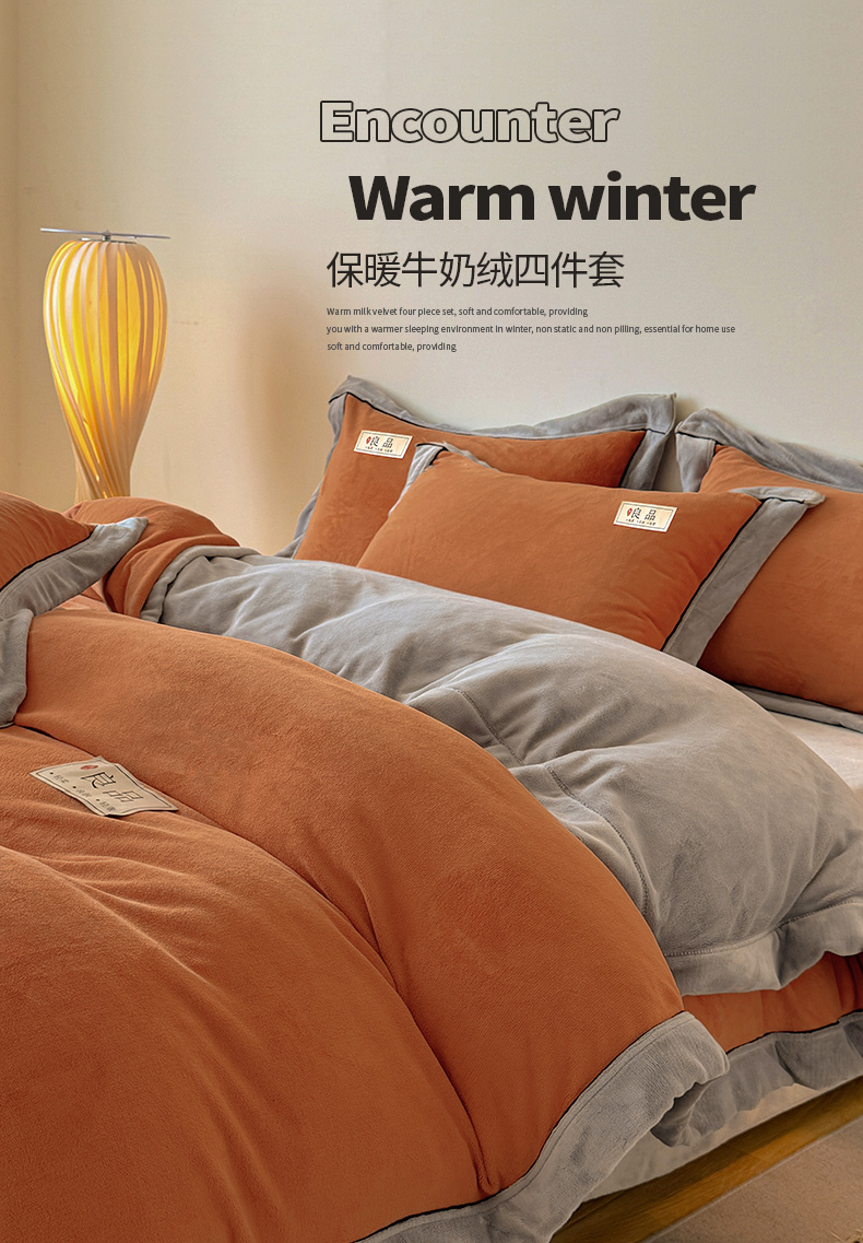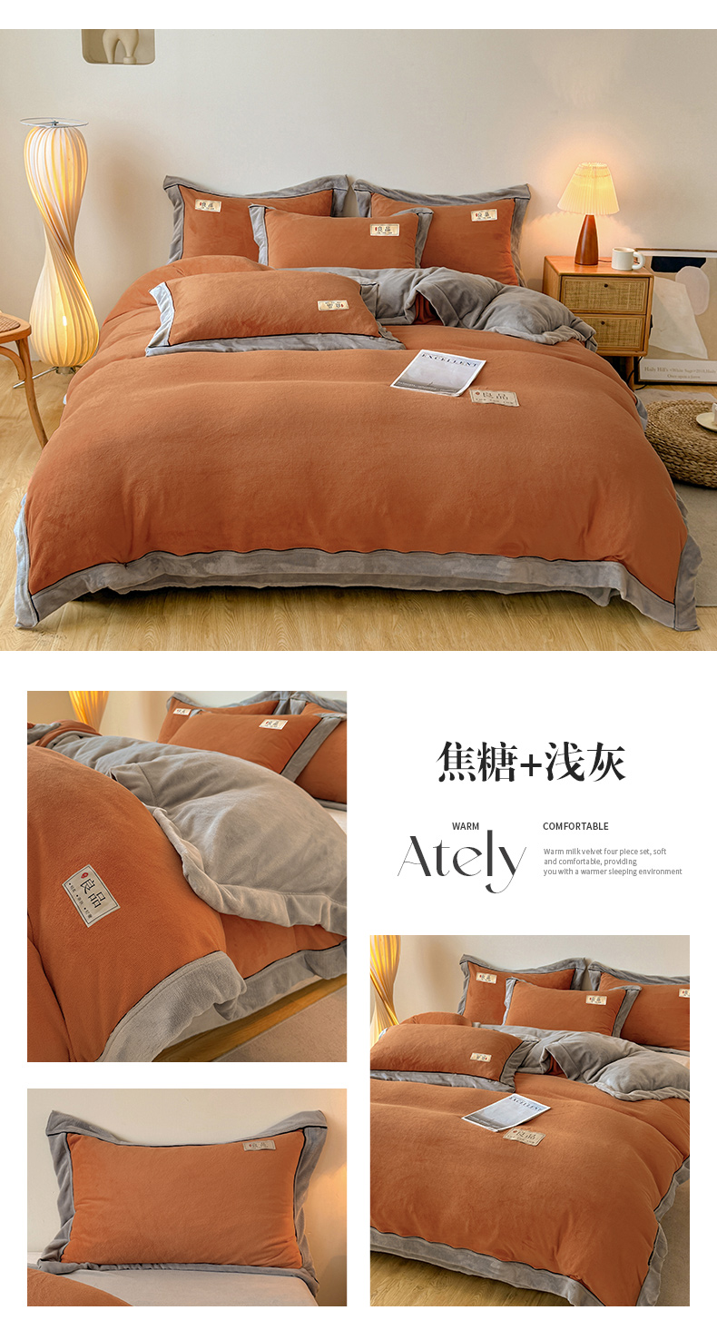当前位置: 91家纺网 > 商品网购 > 床品套件 > 四件套 > 牛奶绒四件套 > 全季家居 2024新款A类良品纯色双拼牛奶绒高克重加厚保暖四件套 焦糖+浅灰