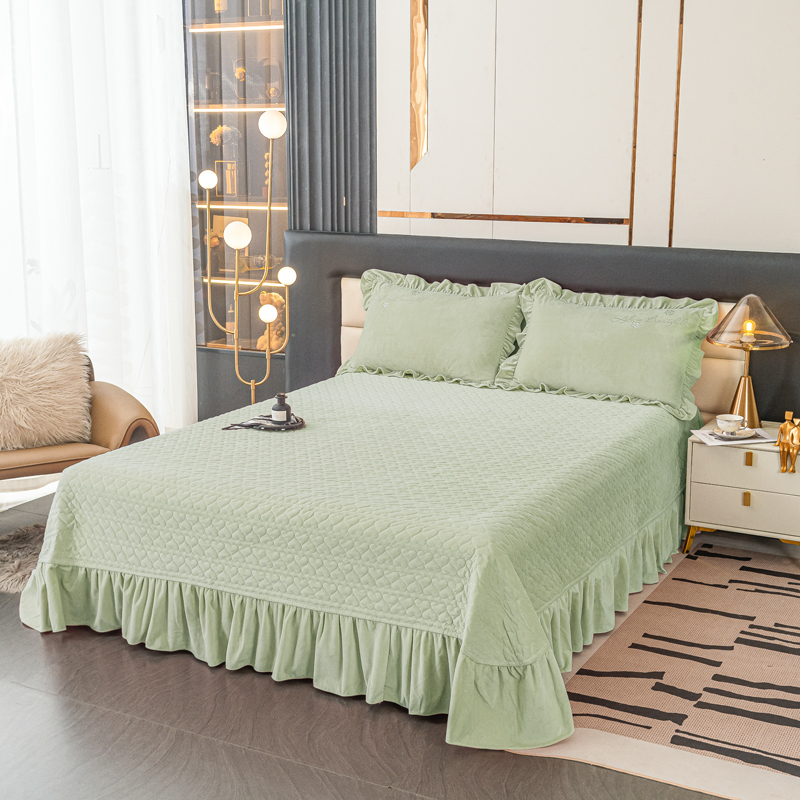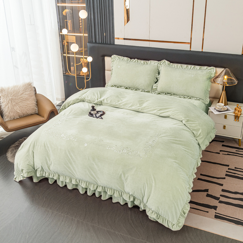 商品名称:乐嘉盈 2025新款纯色刺绣床盖款牛奶绒四件套-安然系列 安然-绿