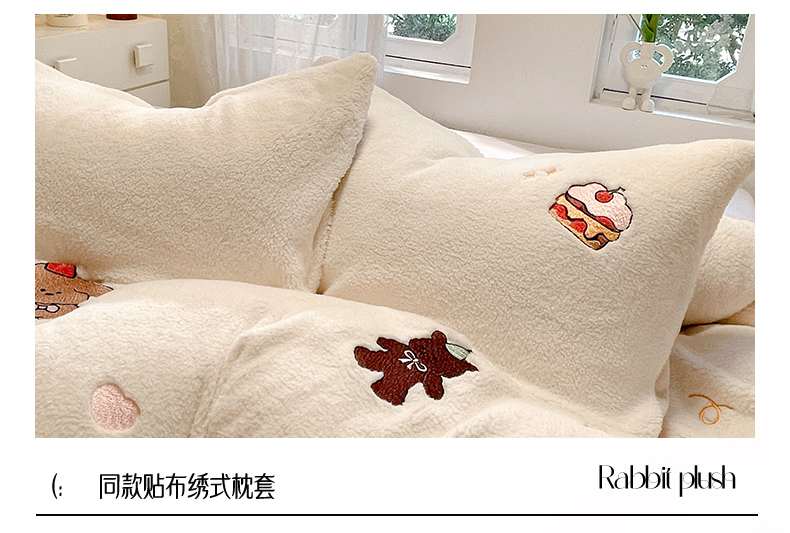 (总)满座家居 2025 热款兔兔绒兔毛绒绣花四件套牛奶绒条纹四件套,嗨嗨熊,煤球滚滚,puppy 酱,cookie,天然呆呆,躺平狗