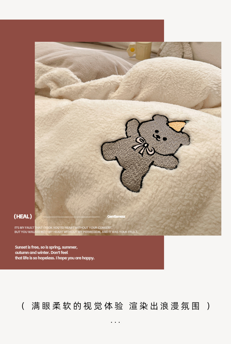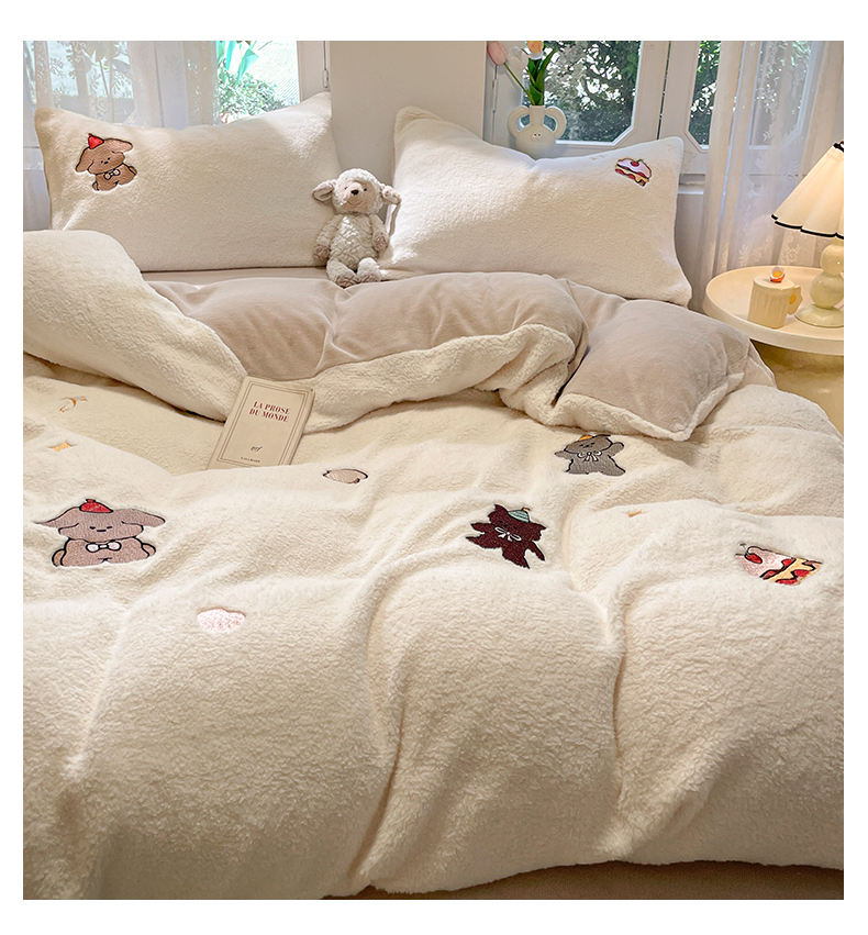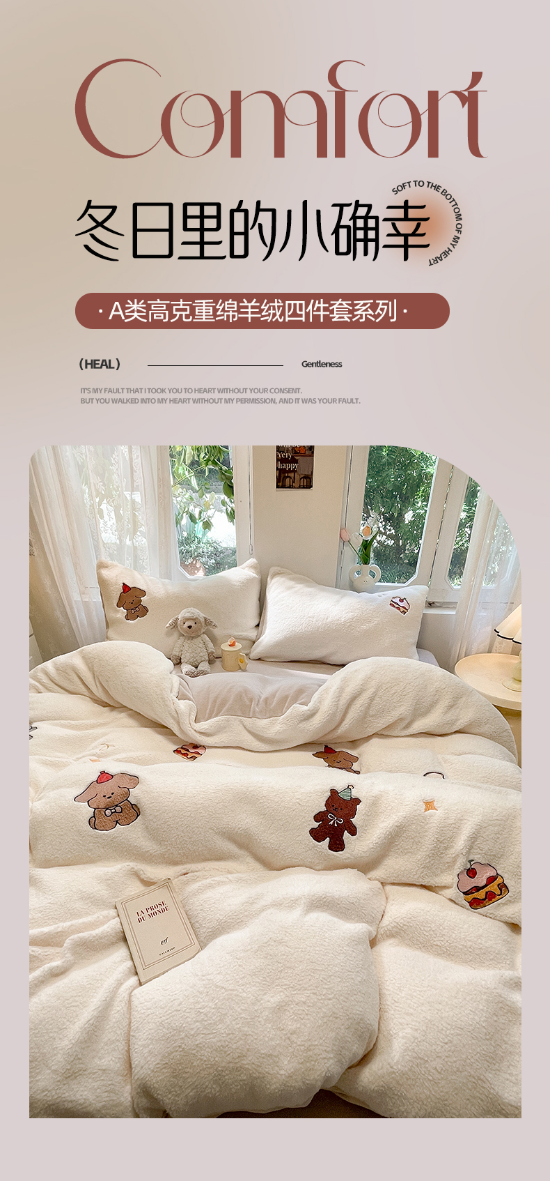 总满座2025爆款绵羊绒牛奶绒绣花小清新四件套,yummy,黑黑豆豆,派对乐园