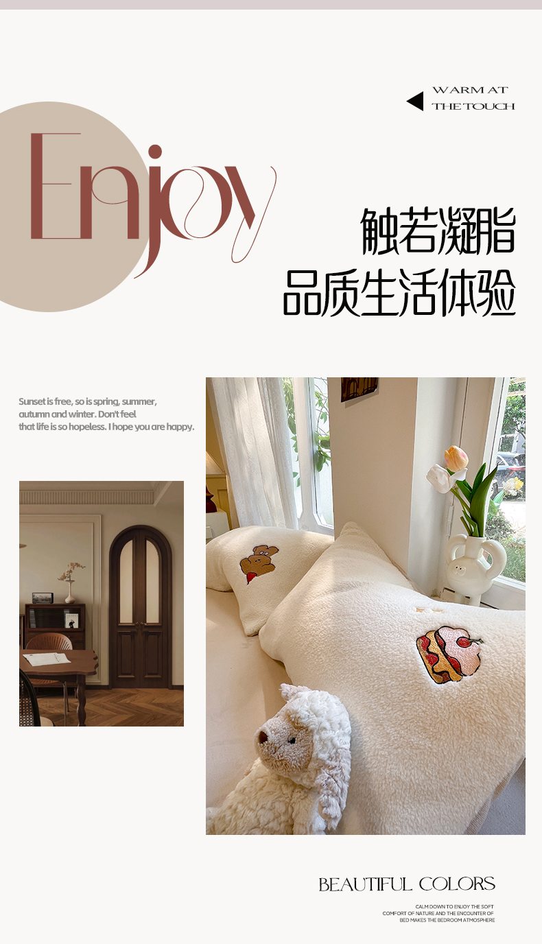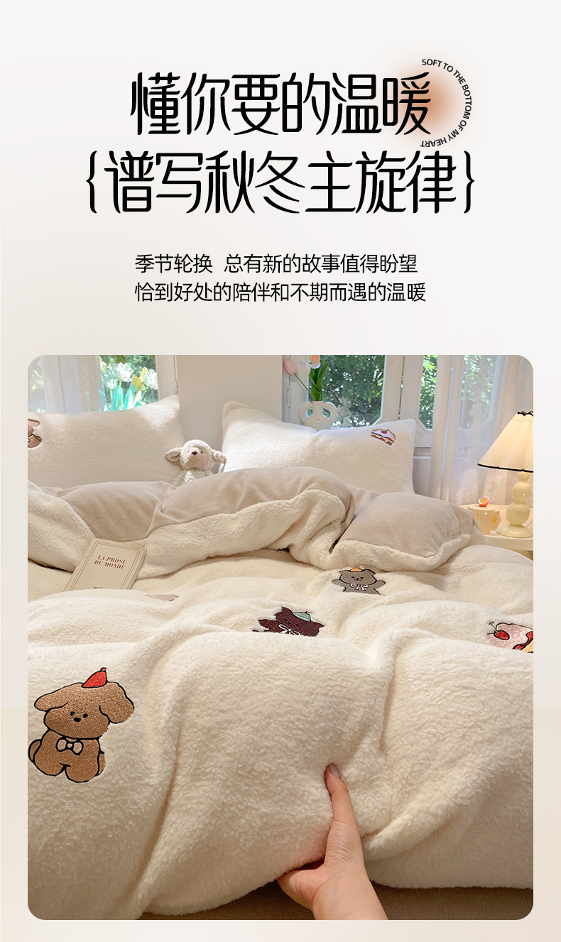 (总)满座家居 2025新款绵羊绒牛奶绒绣花小清新四件套,yummy,黑黑豆豆,派对乐园