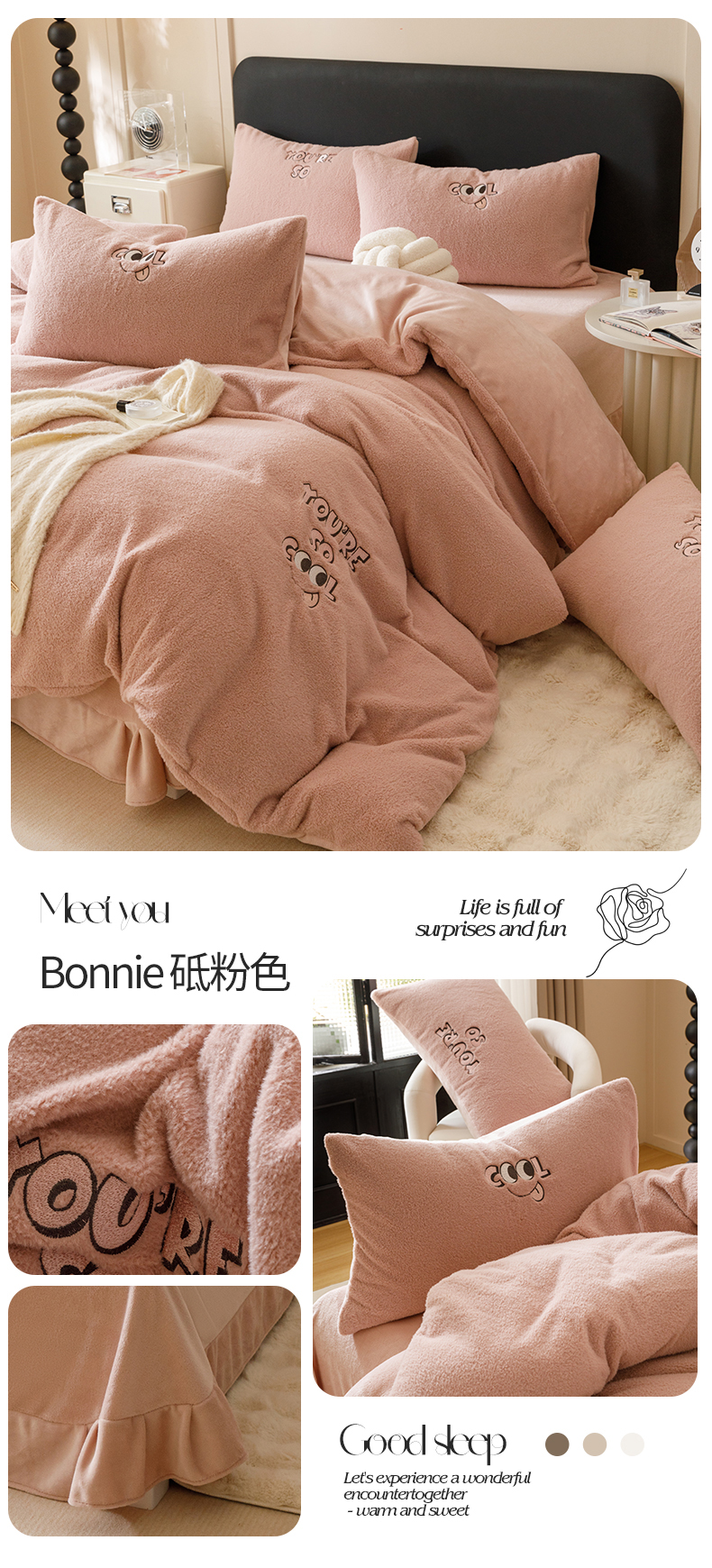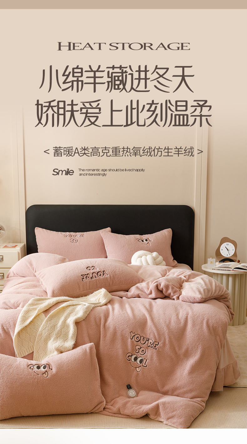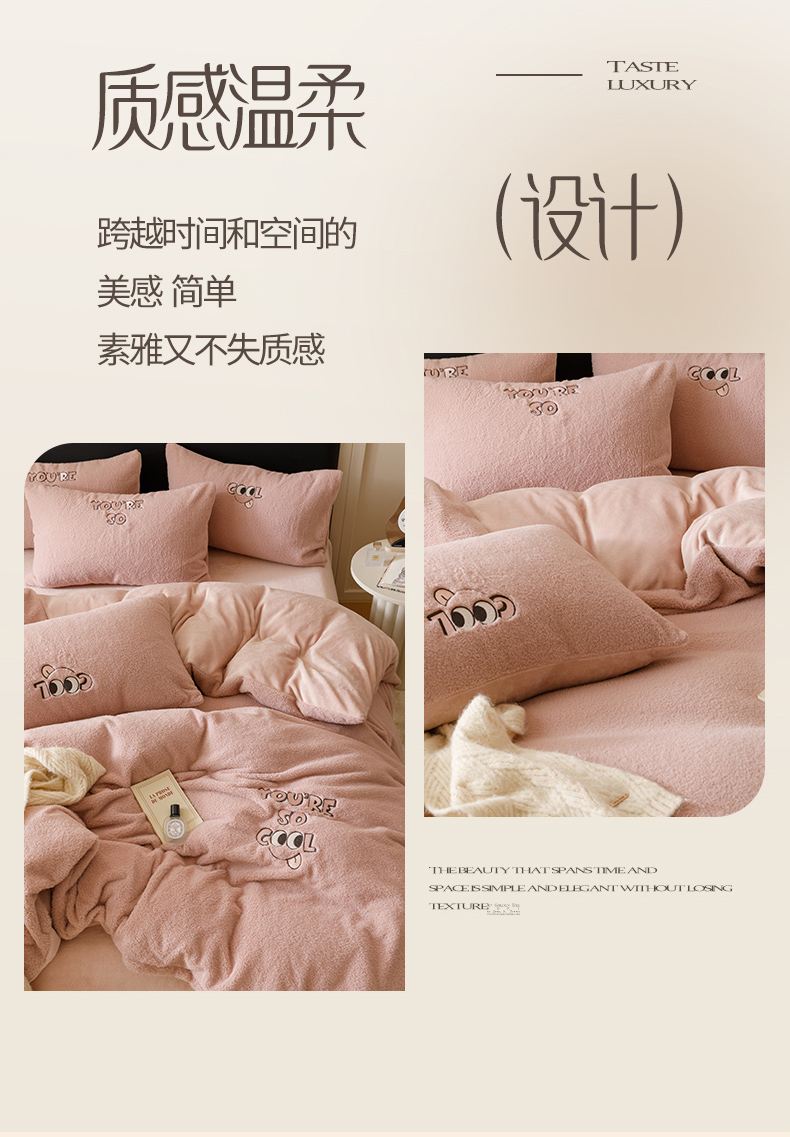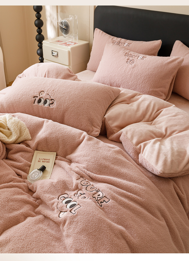 当前位置: 91家纺网 > 商品网购 > 床品套件 > 四件套 > 牛奶绒四件套 > 满座家居 2025新款美式多莉羊绒热氧绒牛奶绒绣花四件套 Bonnie-砥粉色