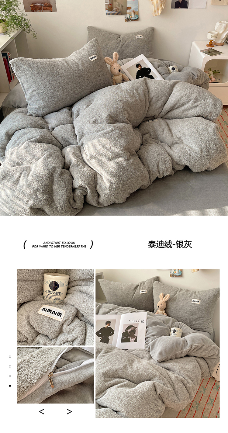 当前位置: 91家纺网 > 商品网购 > 床品套件 > 四件套 > 牛奶绒四件套 > 十里居 2024新款泰迪绒牛奶绒刺绣贴标四件套 泰迪绒-银灰