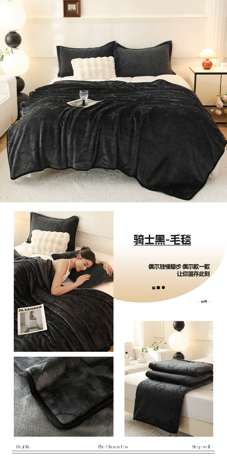 商品名称:逸尚阁 2024新款立体雕花绒毛毯 骑士黑-毛毯