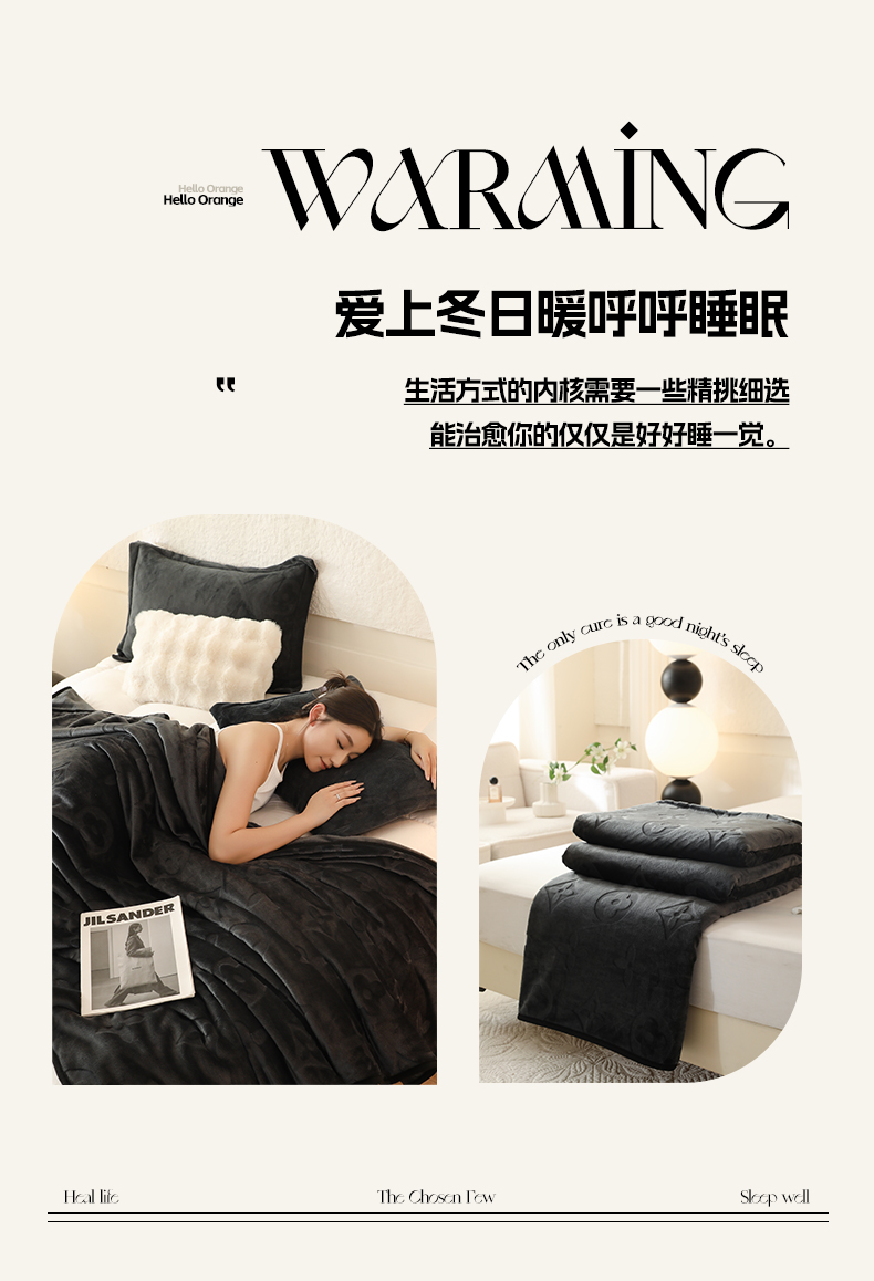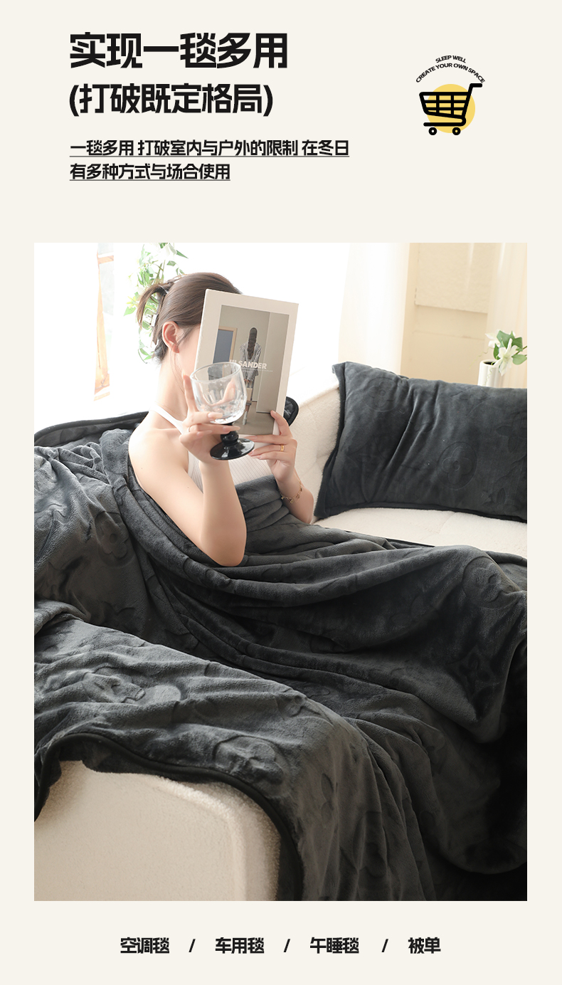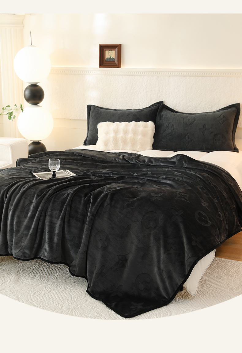 逸尚阁 2024新款立体雕花绒毛毯 骑士黑-毛毯